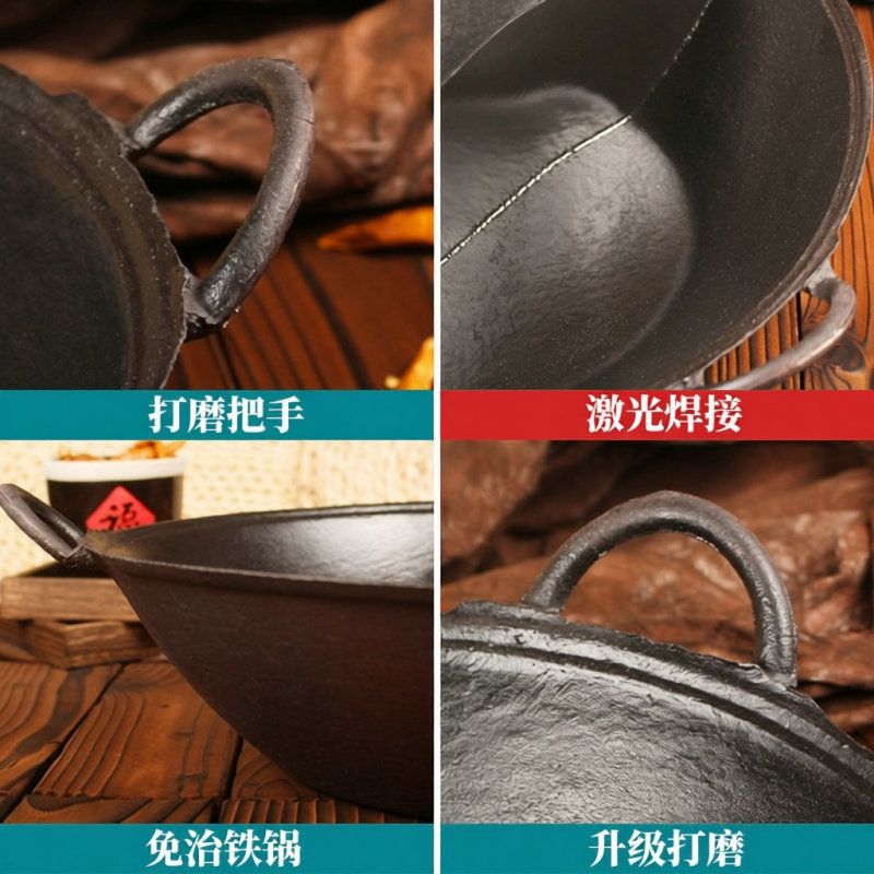 地摊火锅锅商用九宫格平双耳鸳鸯锅重庆火锅店老免治锅具卡式炉