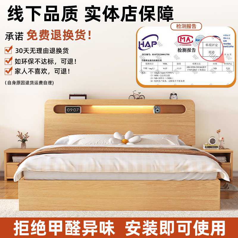 实木床现代简约双人床1.8m家用1.5米单人床出租房1.2米床架经Tω