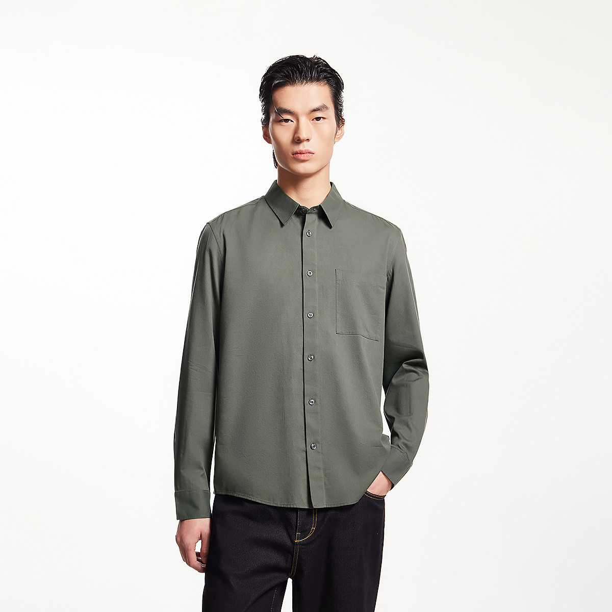 森马长袖衬衫男宽松工装外套情侣款纯色百搭上衣纯棉秋装潮酷流行