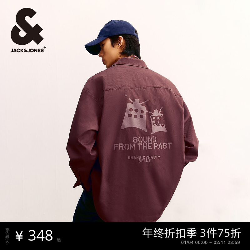杰克琼斯男装秋季新款潮时尚百搭休闲字母刺绣多口袋廓形翻领衬衫