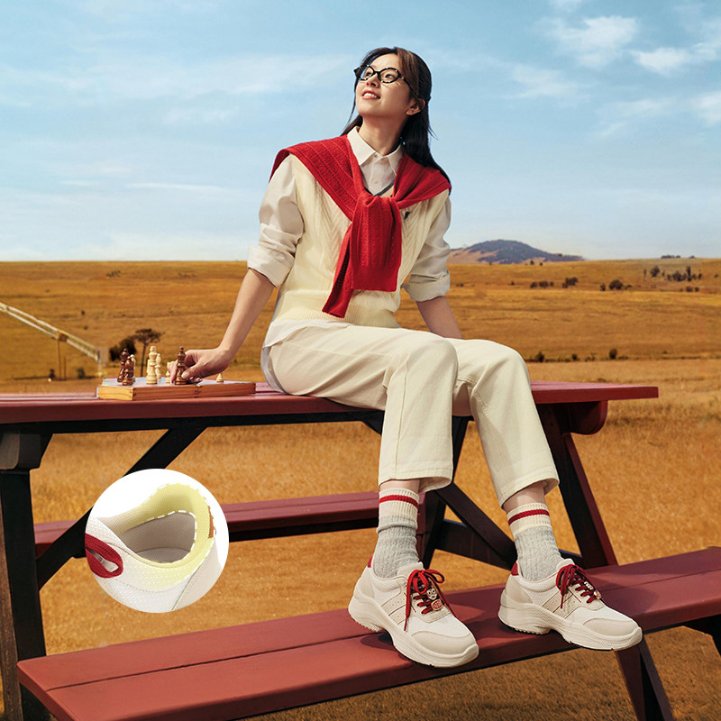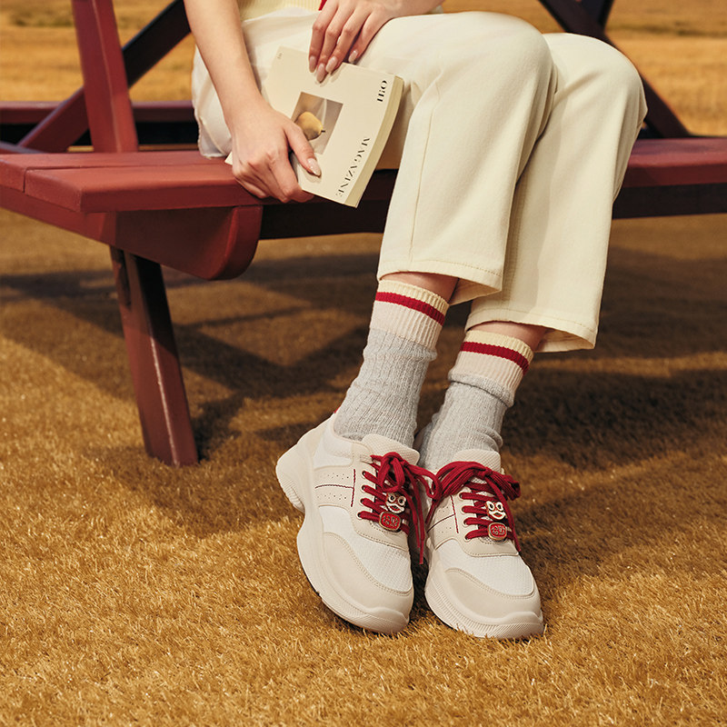 【直播特惠清仓】红蜻蜓运动休闲老爹鞋女潮厚底板鞋单鞋小白鞋女