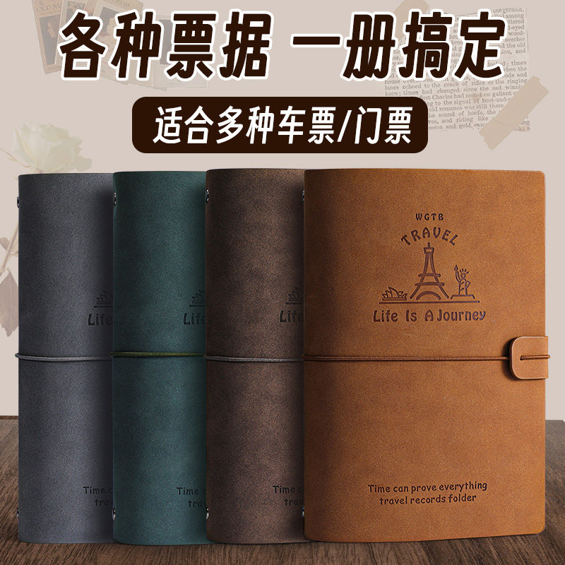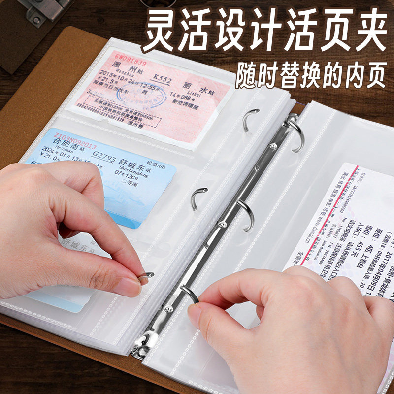 票据收集册活页可拆卸收纳册旅行车票纪念票根收藏册复古皮质本电影票火车票高铁票演唱会门票相册机票夹内页