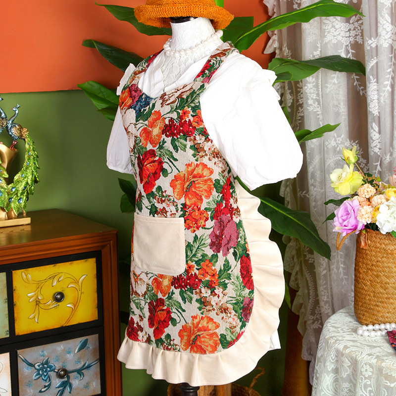 复古风布艺围裙家用防水围腰厨房防护头巾围裙袖套套装特色工作服