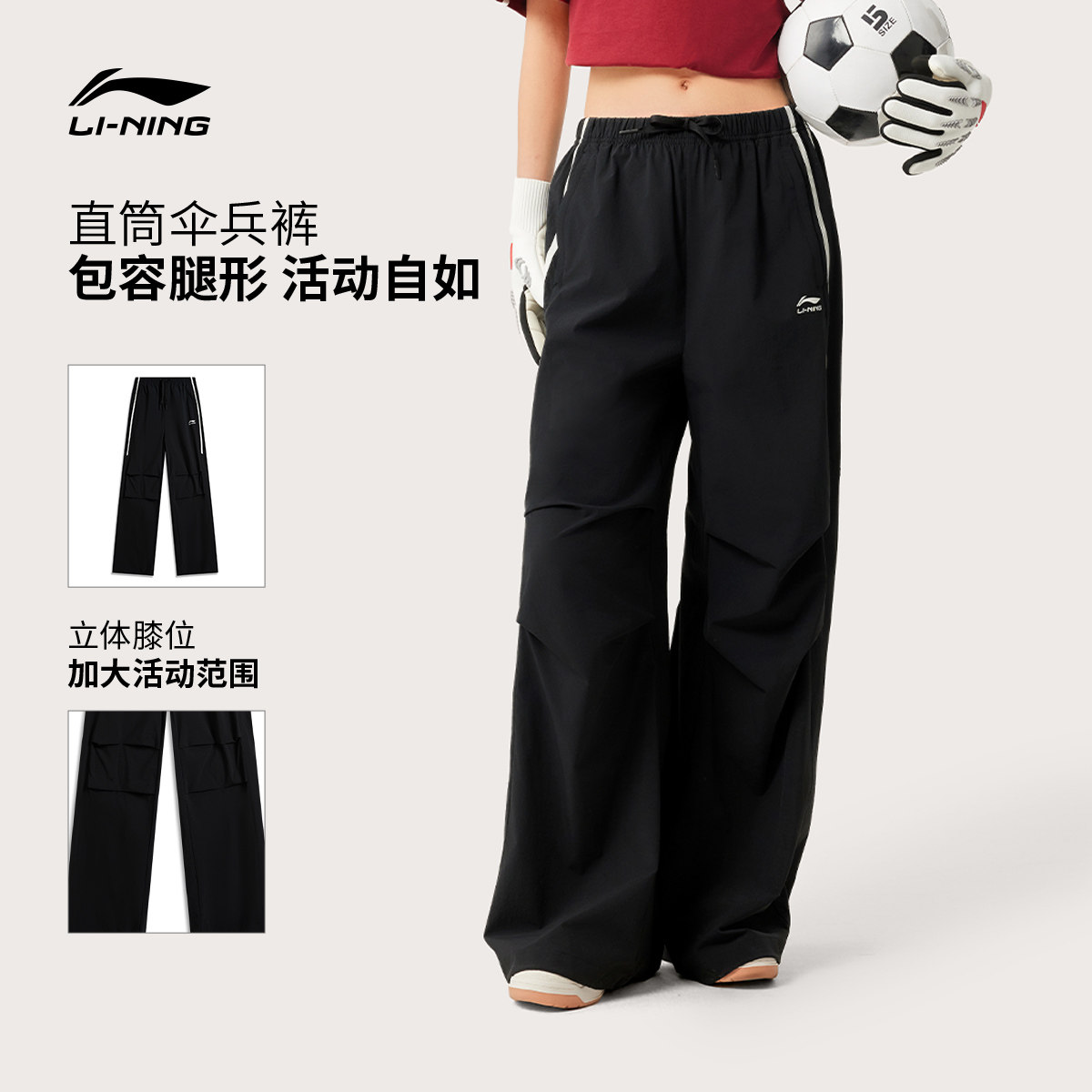 李宁阔腿裤女士宽松休闲伞兵裤直筒裤子美式速干防晒运动工装裤女