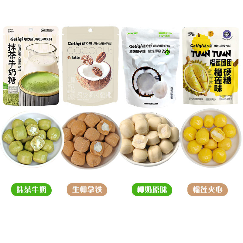 格力奇原味椰子抹茶生椰榴莲独立小包装休闲糖果零食夹心奶糖拿铁