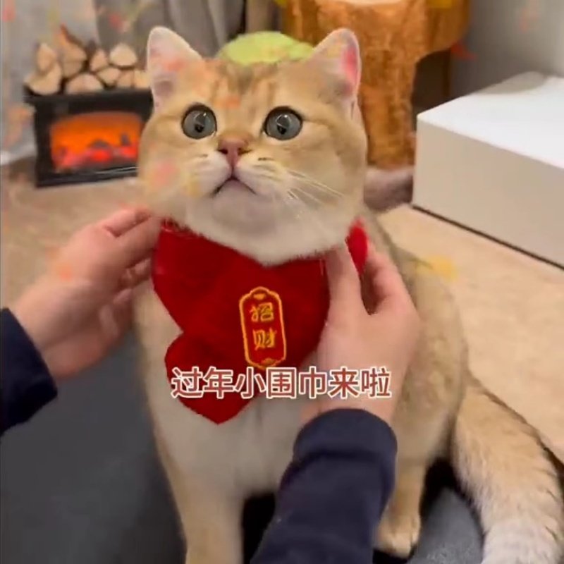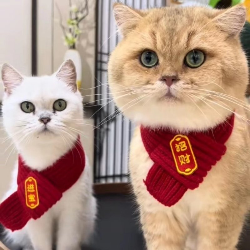 猫咪围脖新年围巾宠物狗狗新年装饰红色保暖中国风口水巾圣诞围兜