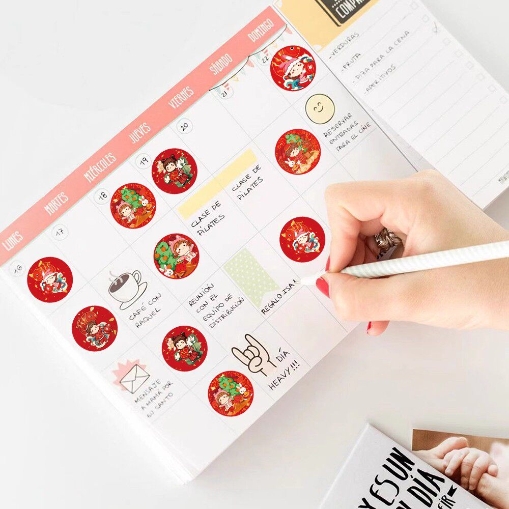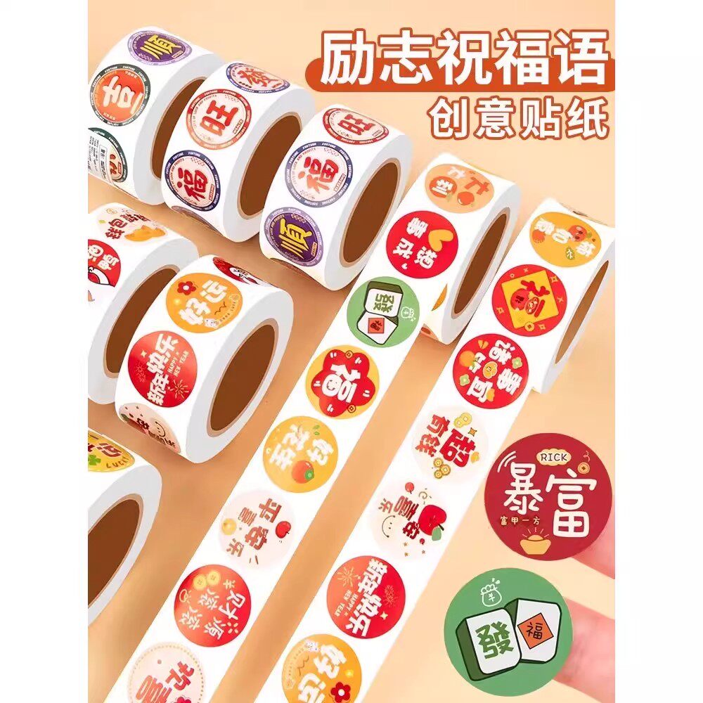 圣诞节贴纸新春新年复古港风福字标签贴卡通迷你小号圆形封口贴画