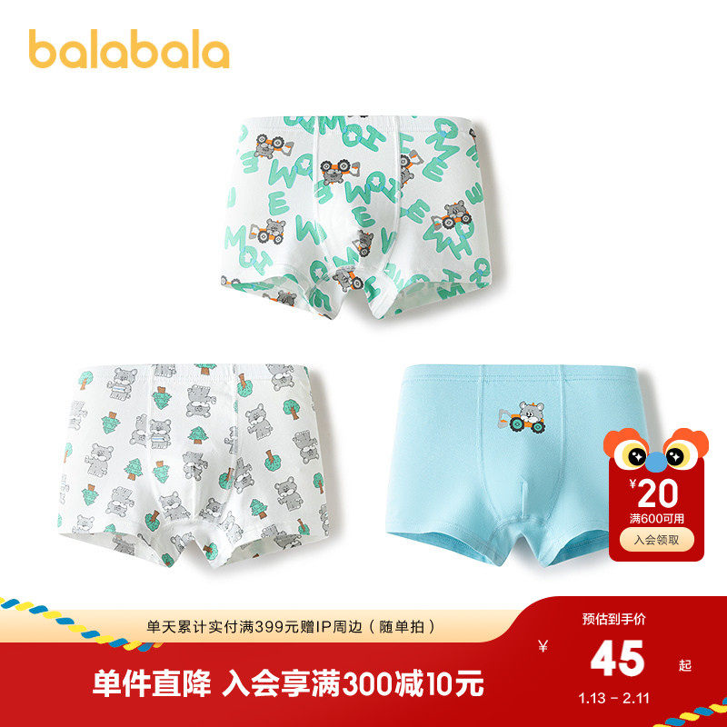 【balaOne】巴拉巴拉儿童内裤棉男童不夹pp抗菌裆四角短裤三条装