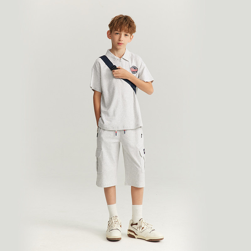 【100%棉】eland kids衣恋童装男童短裤夏宽松裤子休闲运动七分裤