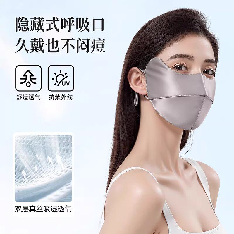 真丝防晒口罩防紫外线女高颜值蚕丝抗菌夏季22姆米透气开车护眼角
