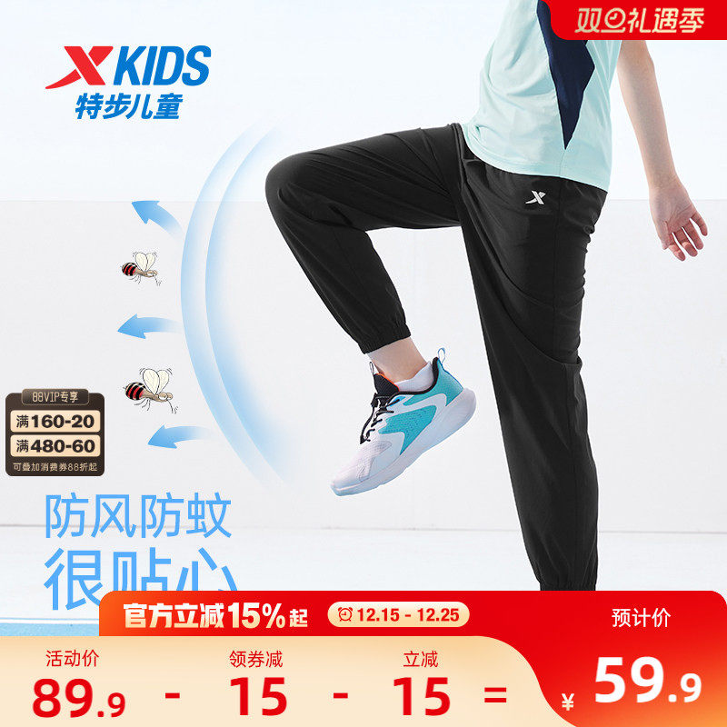 特步童装男童裤子速干裤夏装大童休闲裤防蚊裤秋冬薄款儿童运动裤