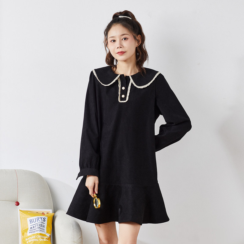 iqcq气球熊时尚辣妹套装秋季抹胸连衣裙女收腰一字肩黑色蓬蓬裙子