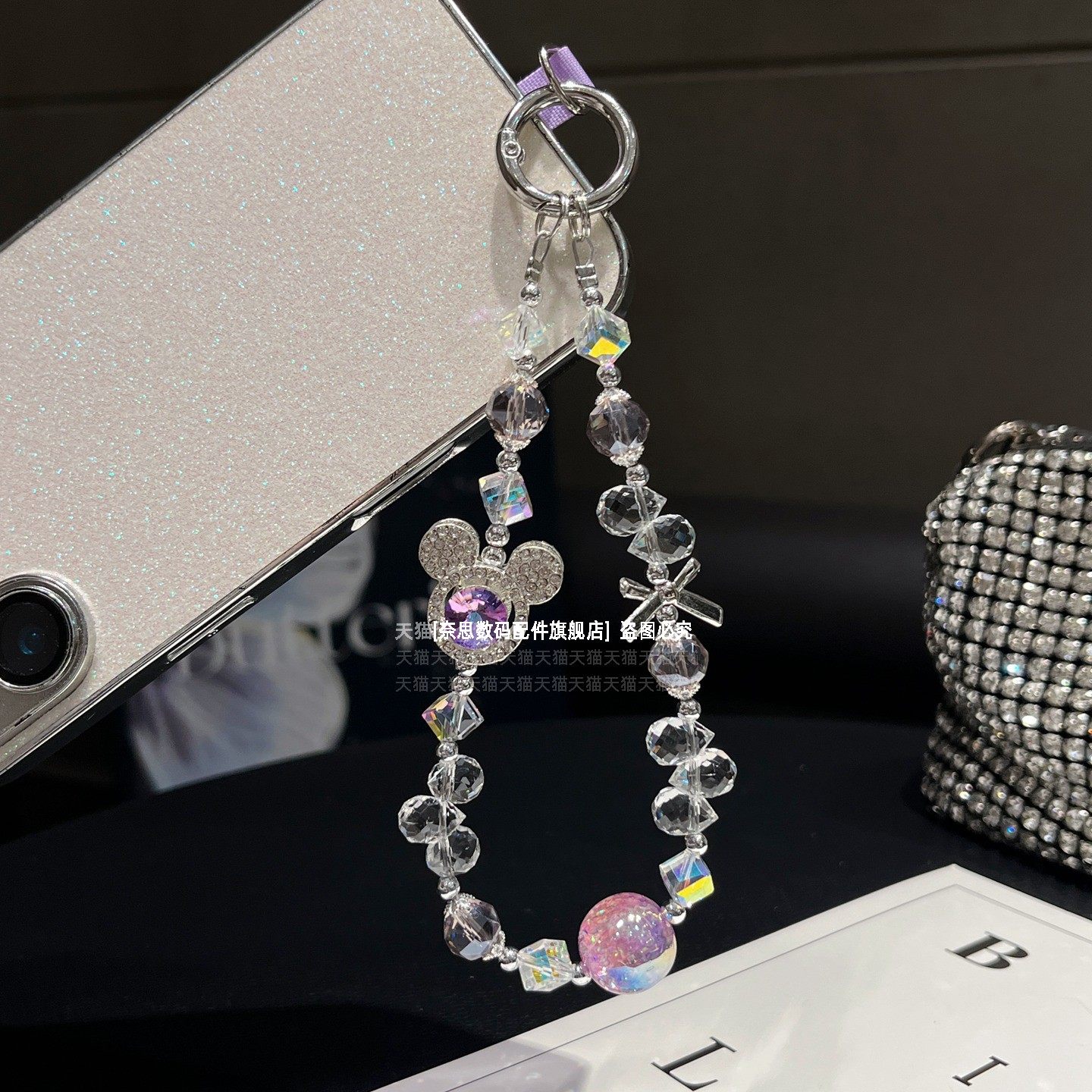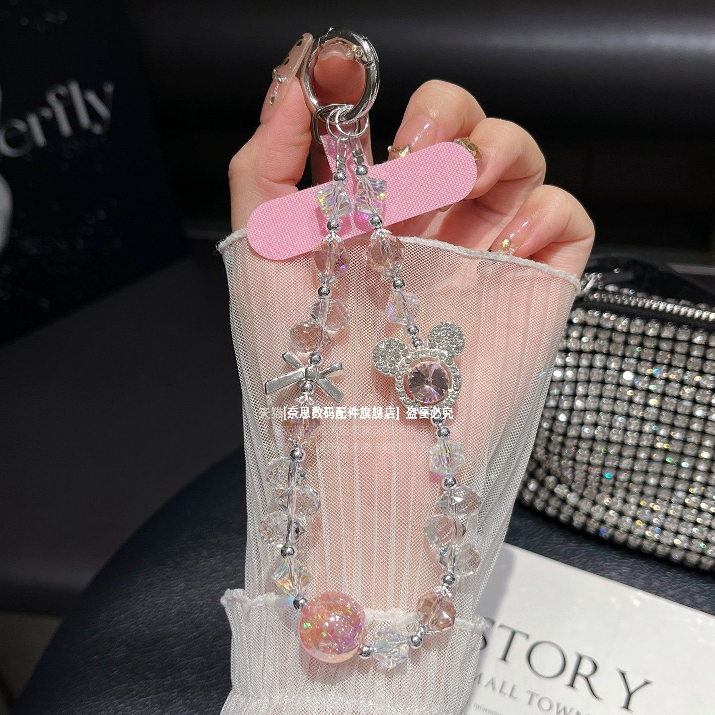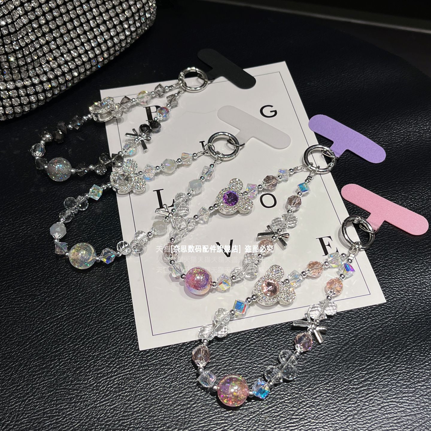 可爱重工水钻公仔手机链超闪透亮水晶链条旅游手腕挂饰精致高档串珠挂链新款防丢手链包包钥匙相机挂件垫片壳