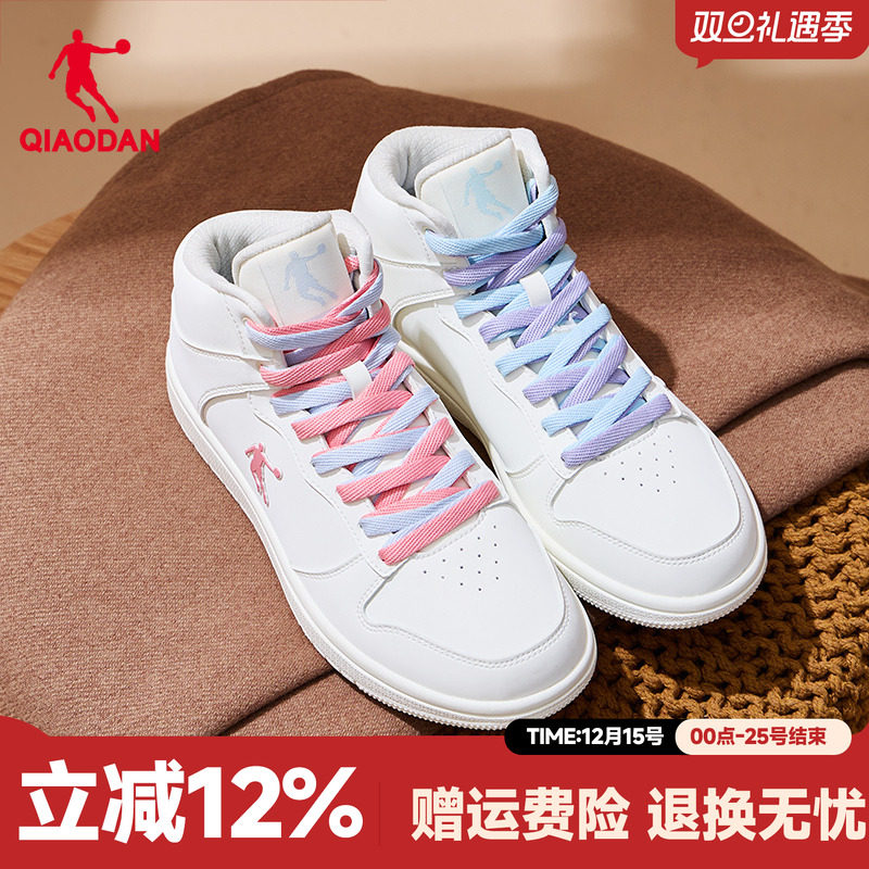 特步小白鞋女鞋冬季情侣休闲鞋子男鞋空军一号厚底百搭运动鞋板鞋