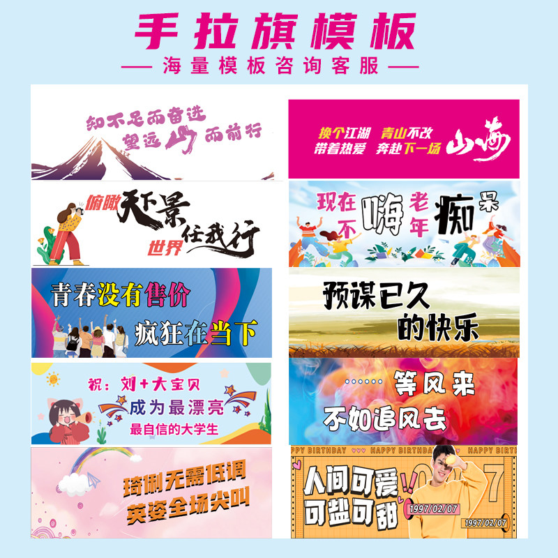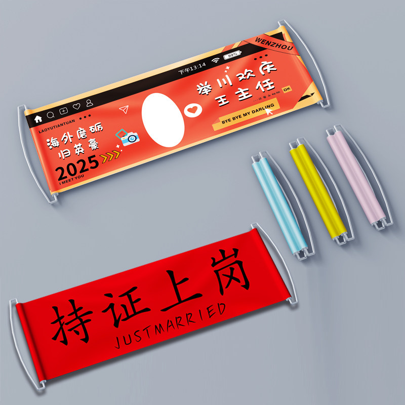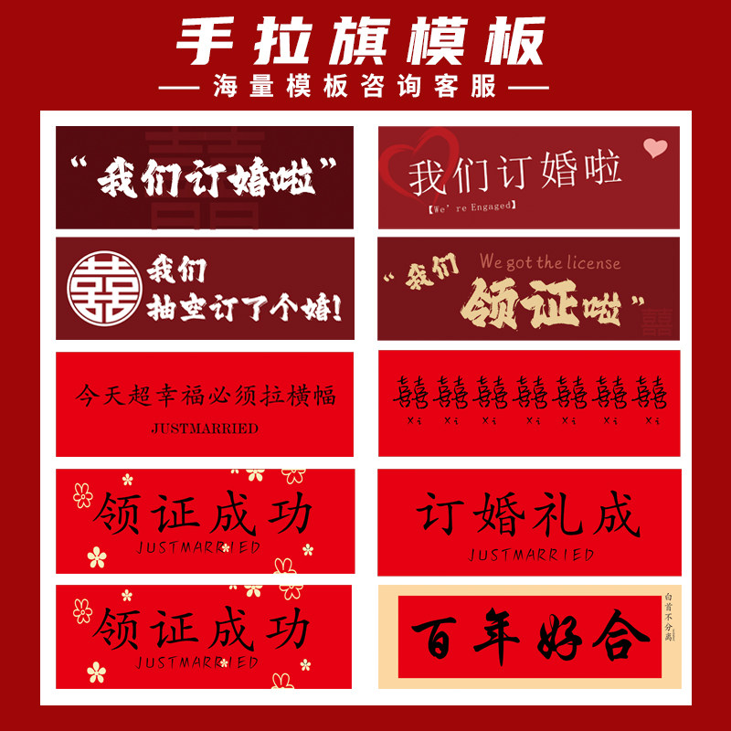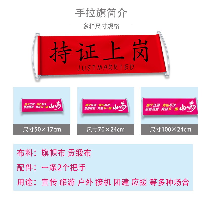 手拉旗定制结婚旅游户外团建自动伸缩手持拉条幅定做订婚春游应援