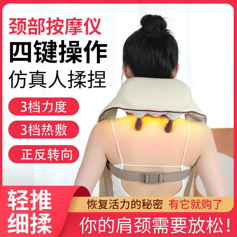 哇噢热敷披肩肩颈按摩仪颈椎按摩器揉捏脖子斜方肌颈部腰背部按摩
