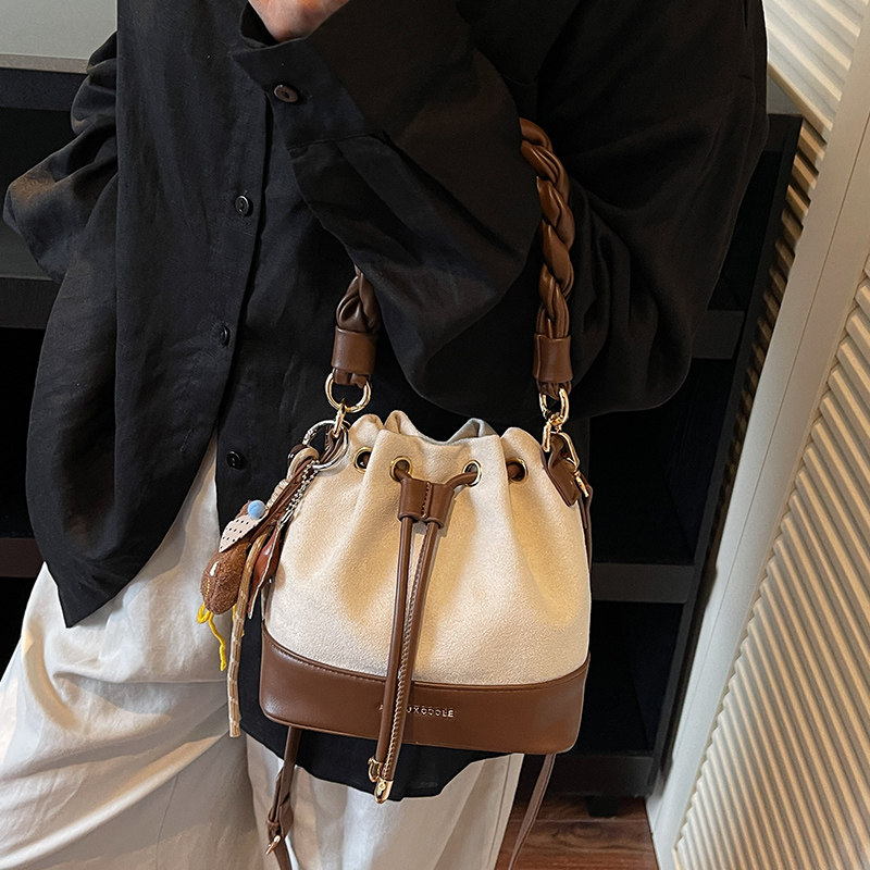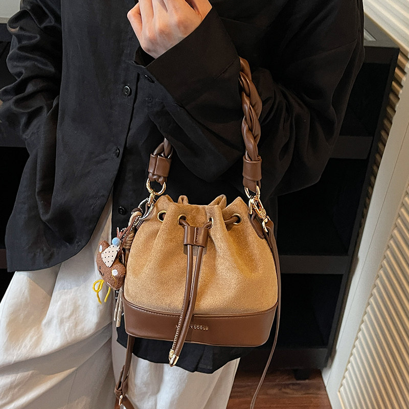 艾米兔女包2026新款洋气百搭麻花手提水桶包通勤时尚复古斜挎包