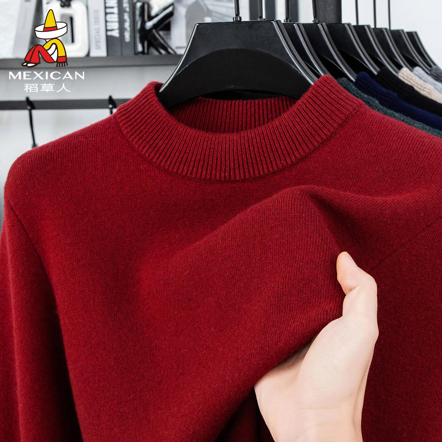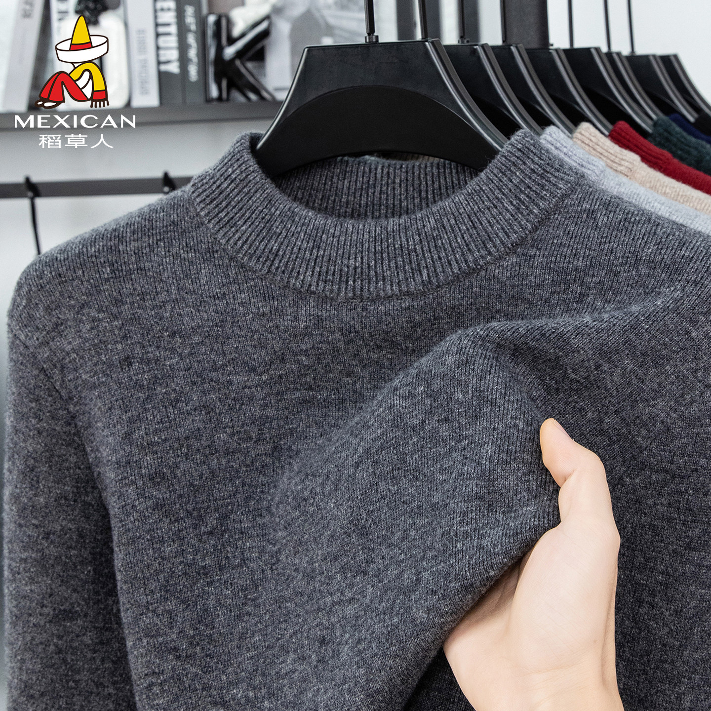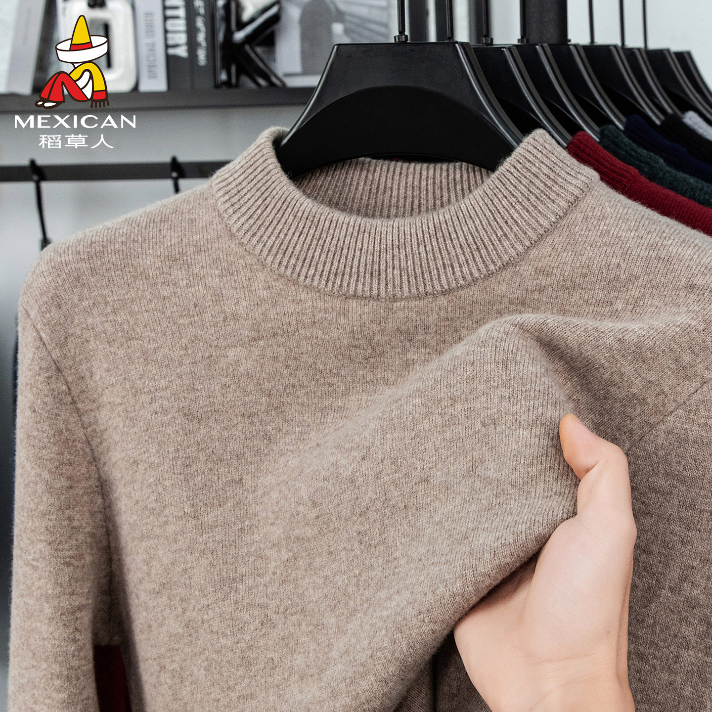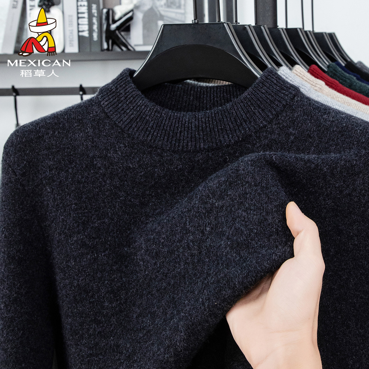 稻草人羊毛衫100%纯羊毛圆领毛衣男冬季加厚保暖针织打底羊绒衫J