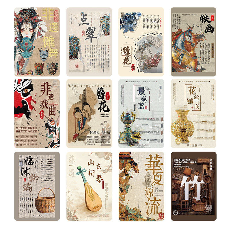 55张非遗文化小卡中国戏曲皮影剪纸木雕陶瓷清明河图传统文创小卡