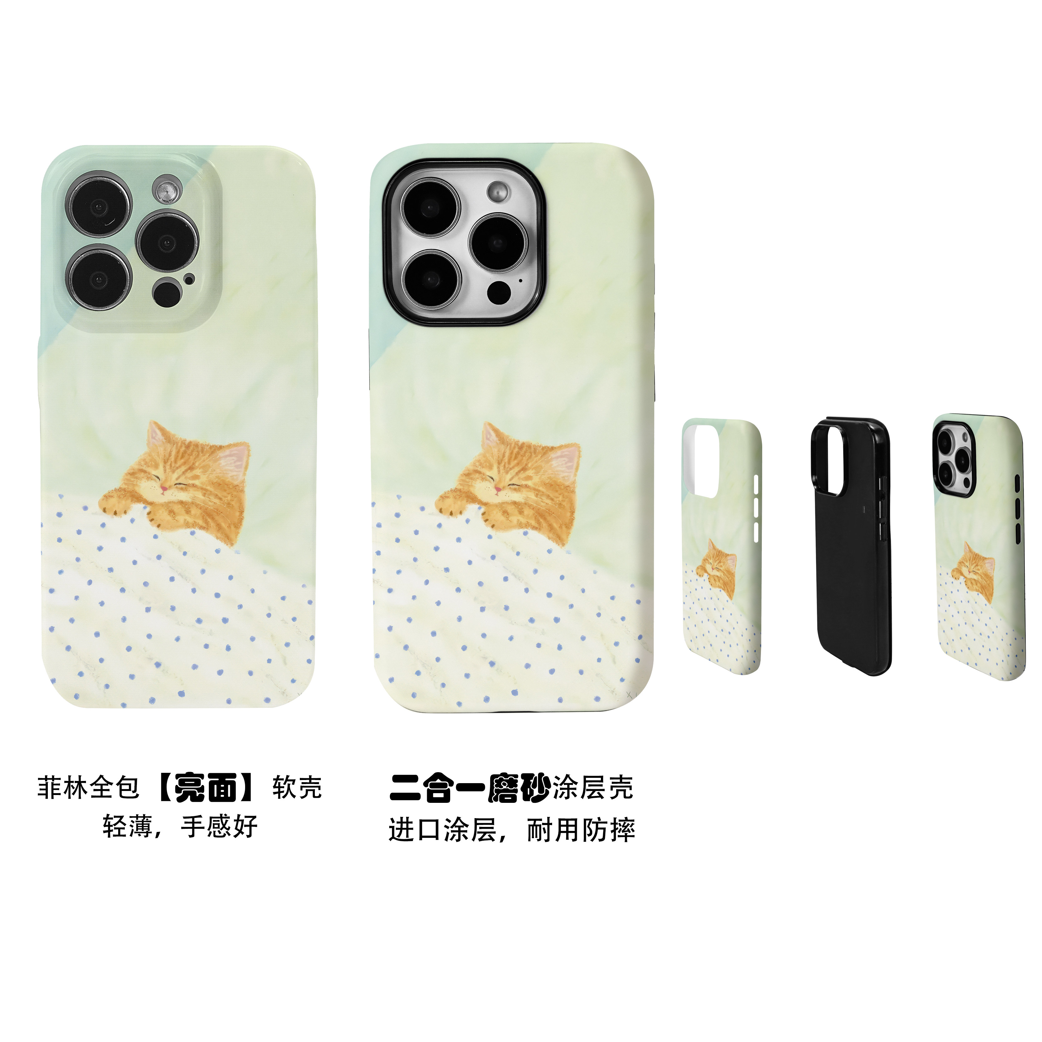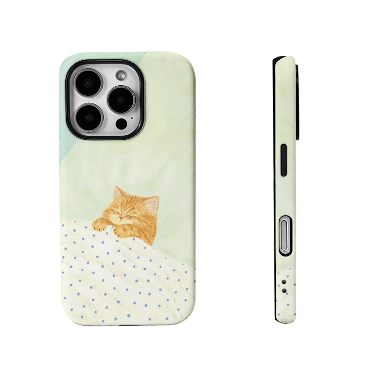 可爱手绘猫咪盖被睡觉菲林二合一手机壳适用苹果17nova14华为p70mate60小米15opporen14ovivo荣耀300iPhone16