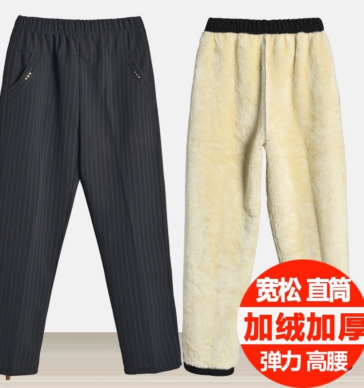 中老年女裤秋冬长裤松紧腰宽松直筒加绒加厚奶奶裤羊羔绒保暖大码