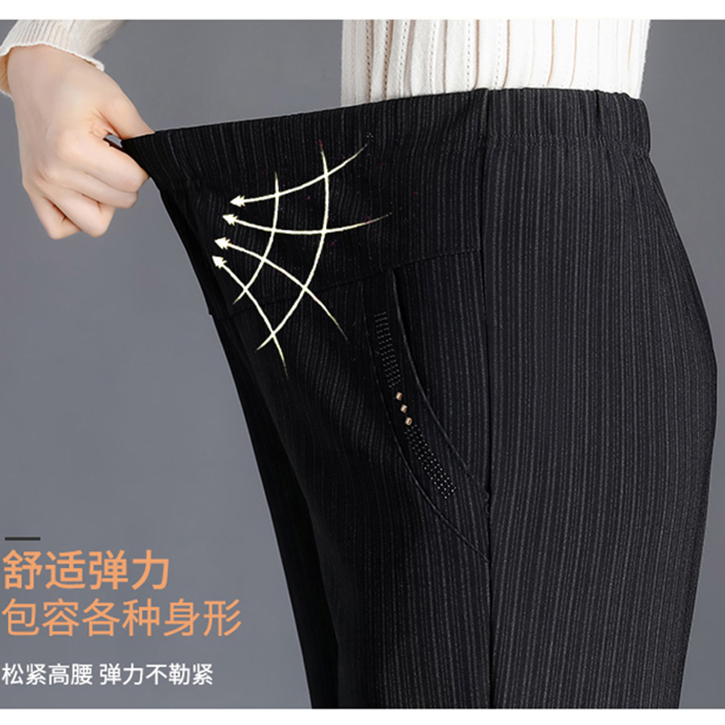妈妈裤子春秋款松紧高腰弹力中老年女裤宽松大码直筒奶奶加绒长裤