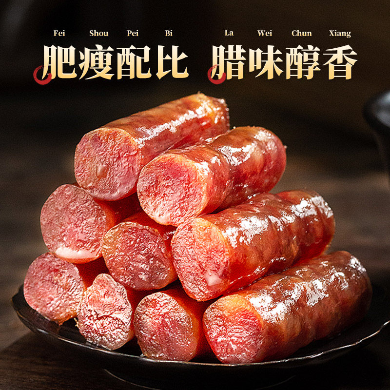 广式腊肠1斤装正宗甜酒风煲仔饭广东腊味老字号早餐纯肉优选麻辣