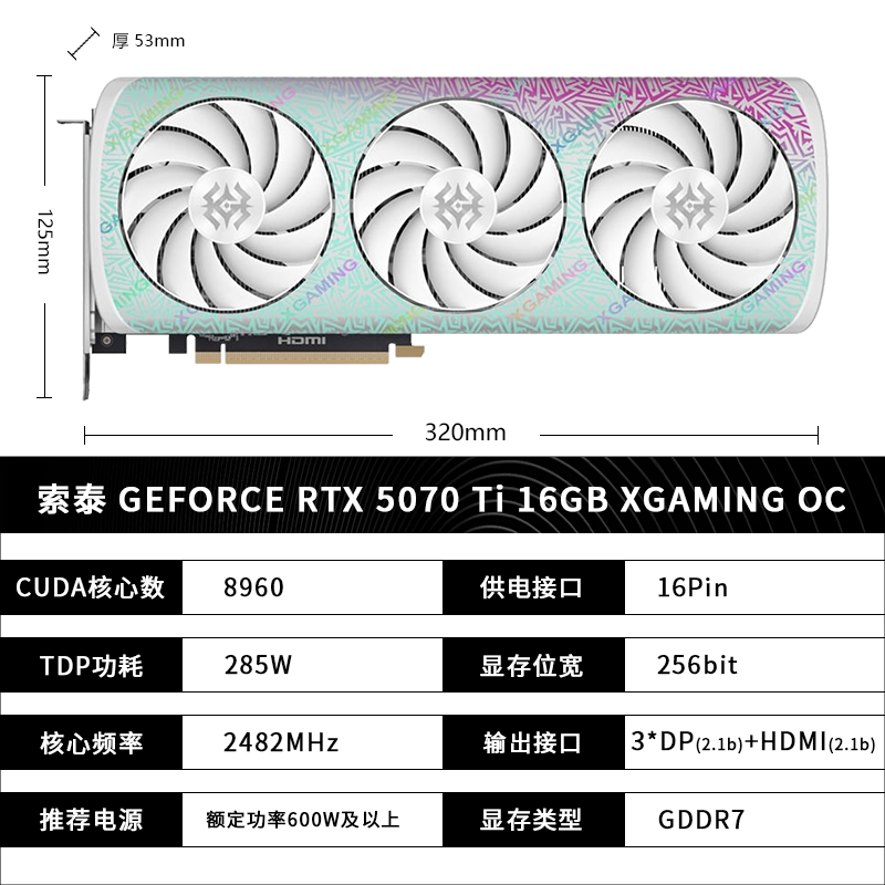 索泰TX 5070 Ti独立显卡16G游戏渲染直播剪Ai辑台式机电脑XGAMING