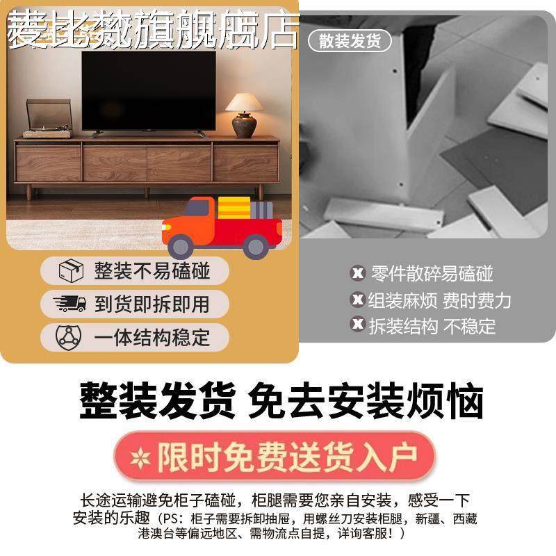 麦比梵实木中古风电视柜茶几组合客厅家用2025新款收纳储物柜一体小户型床笠拉车
