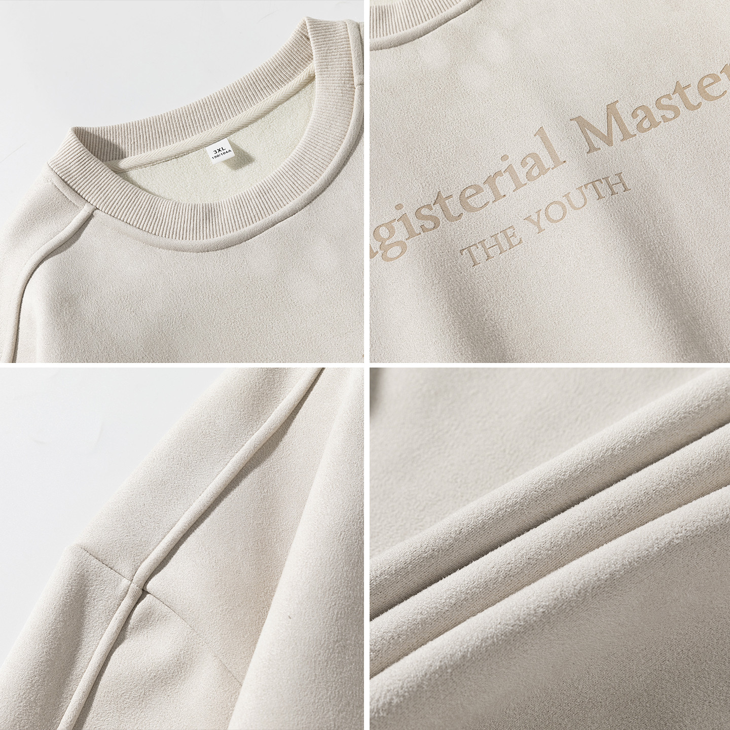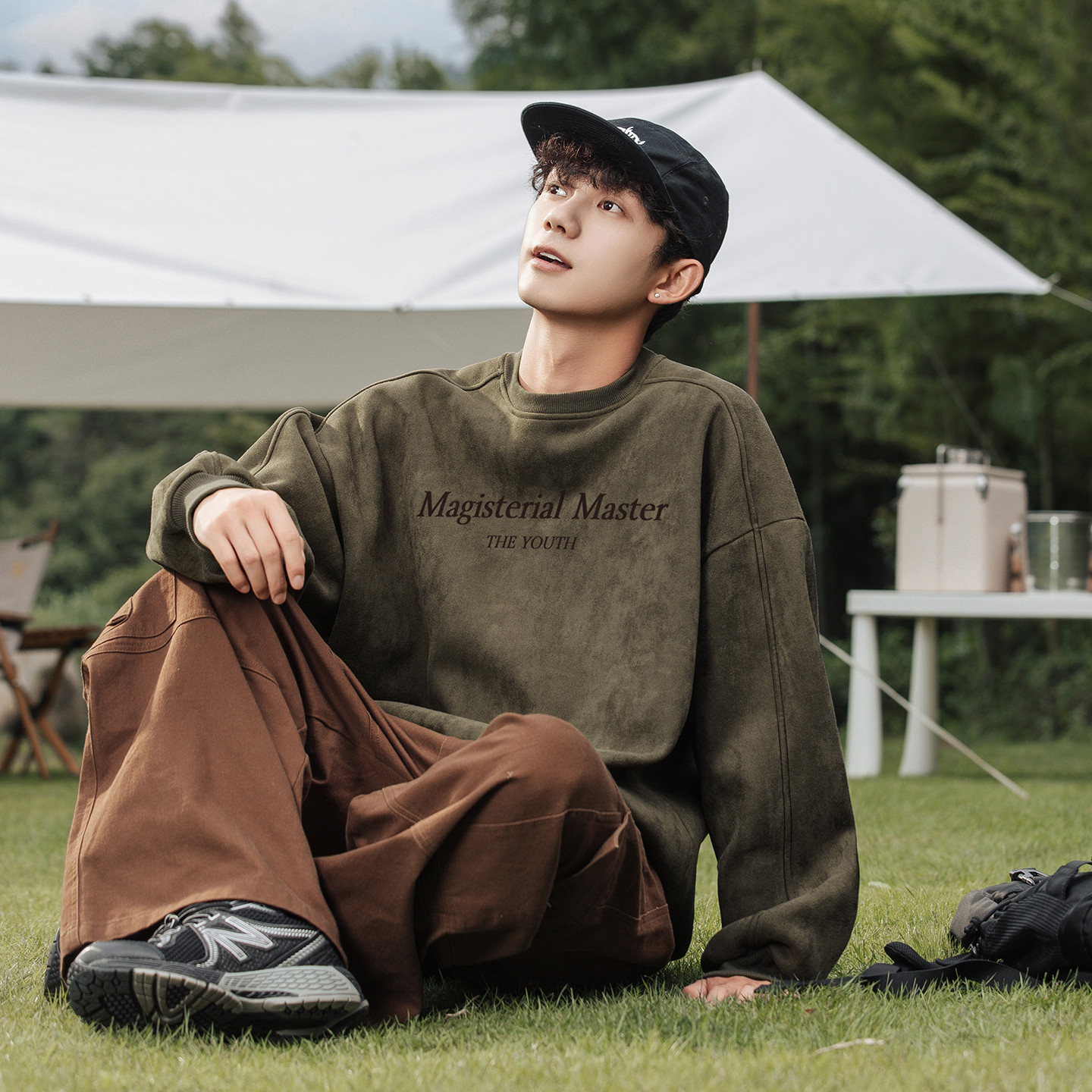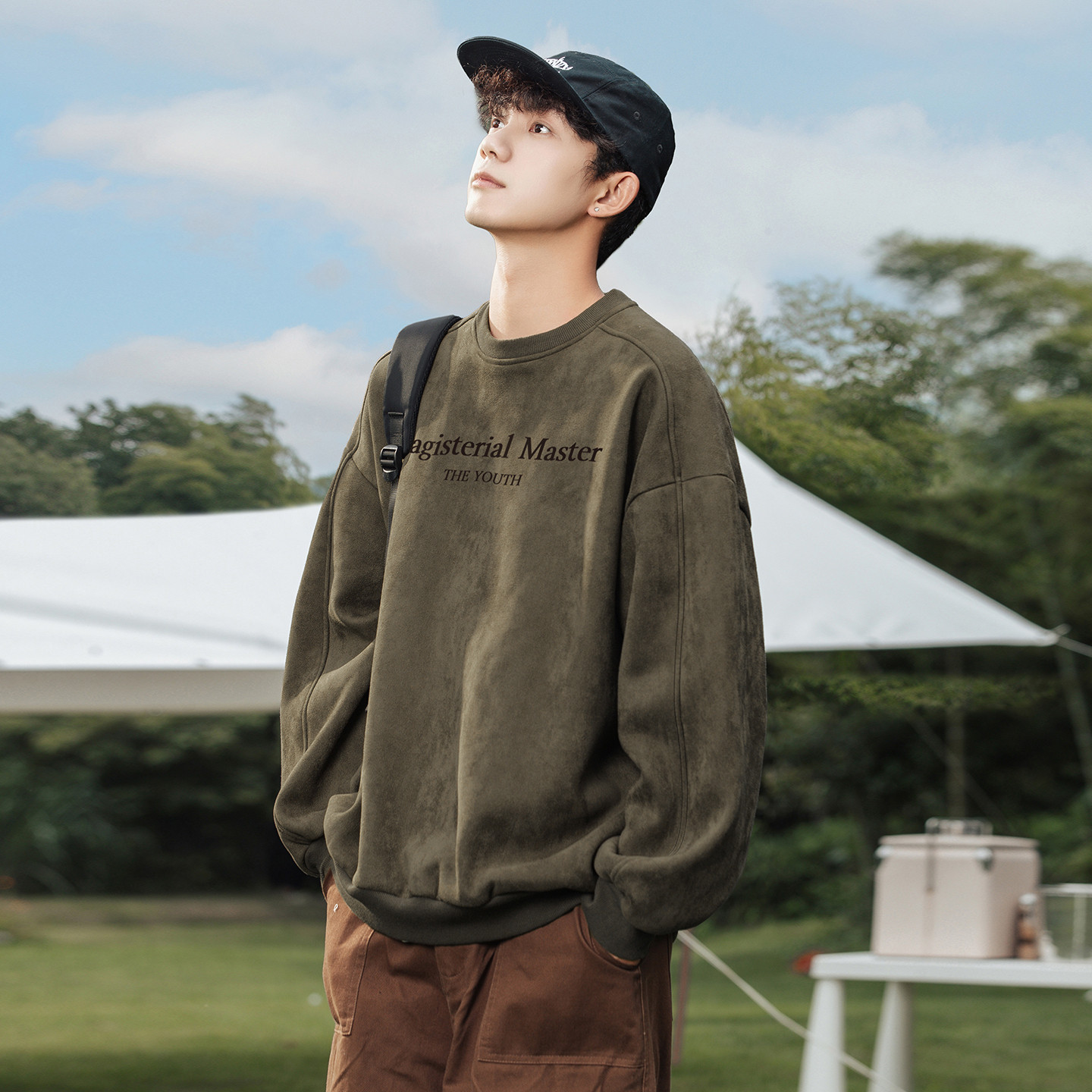 男士重磅麂皮绒圆领加绒卫衣潮牌男新款冬季男装加厚长袖上衣冬装