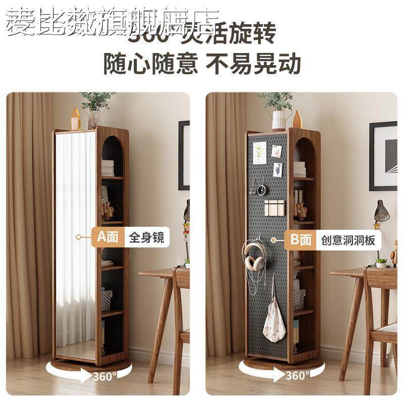 麦比梵全实木穿衣镜落地置物架客厅玄关靠墙家用旋转转角柜书架储物柜床笠拉车