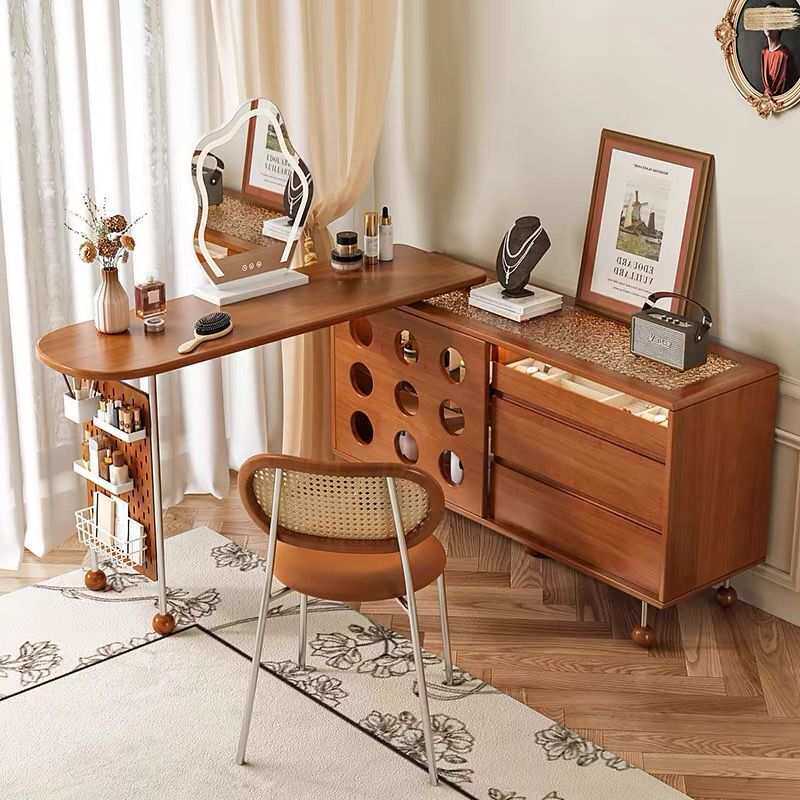 法式复古伸缩梳妆台妆镜斗柜一体中古卧室床边收纳转角新品