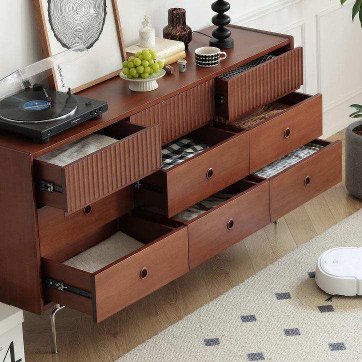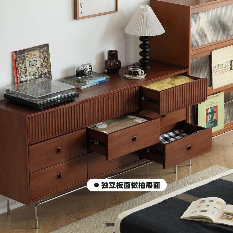 北欧实木斗柜家用客厅不锈钢多功能收纳柜卧室复古床尾储物九斗柜
