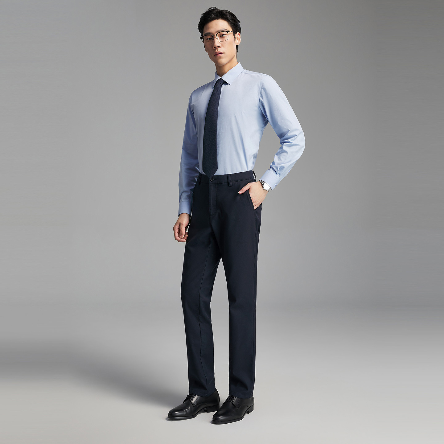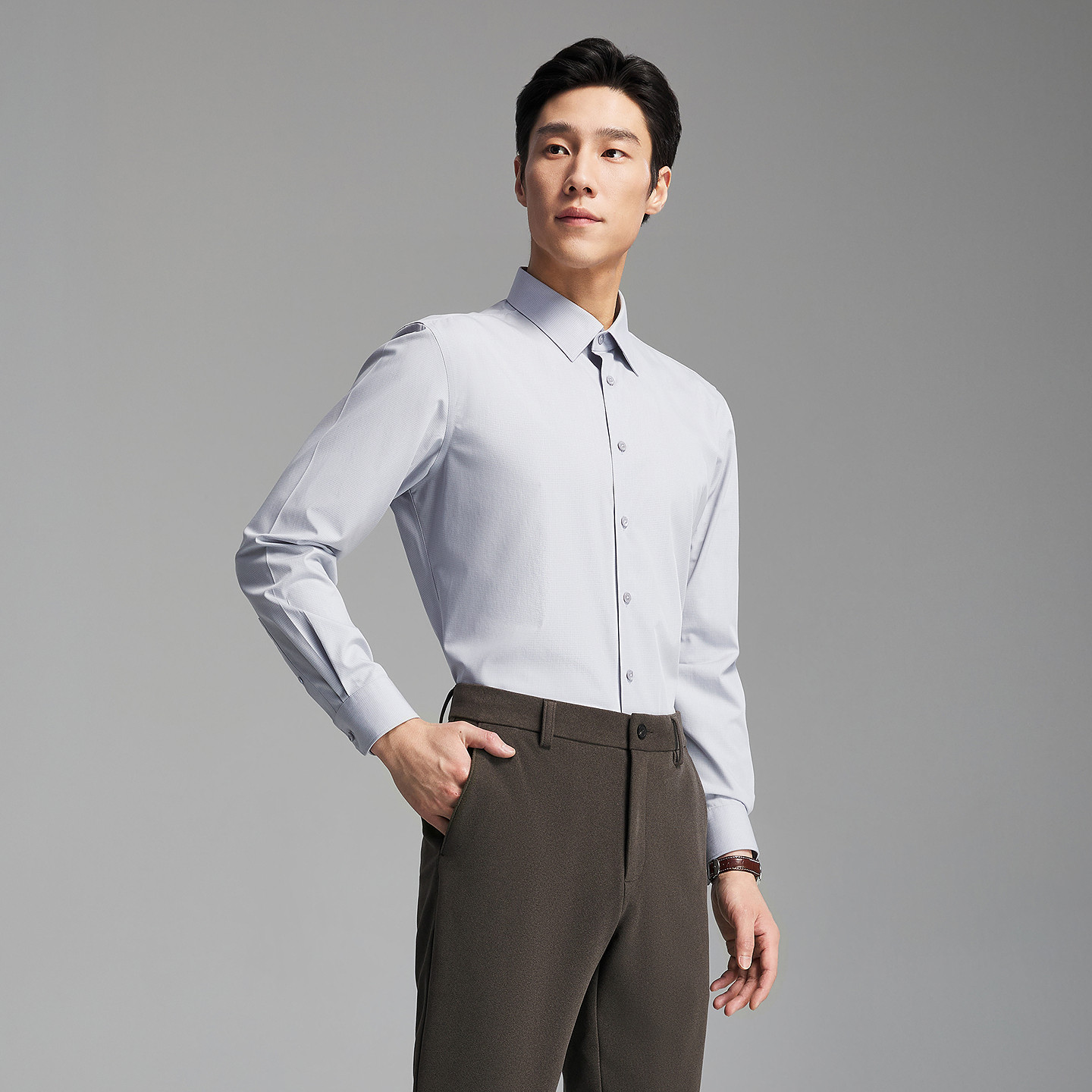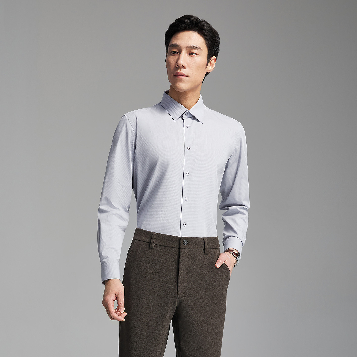 【清仓】杉杉品牌男士长袖衬衫纯色2025春季新款休闲免烫纯棉衬衣