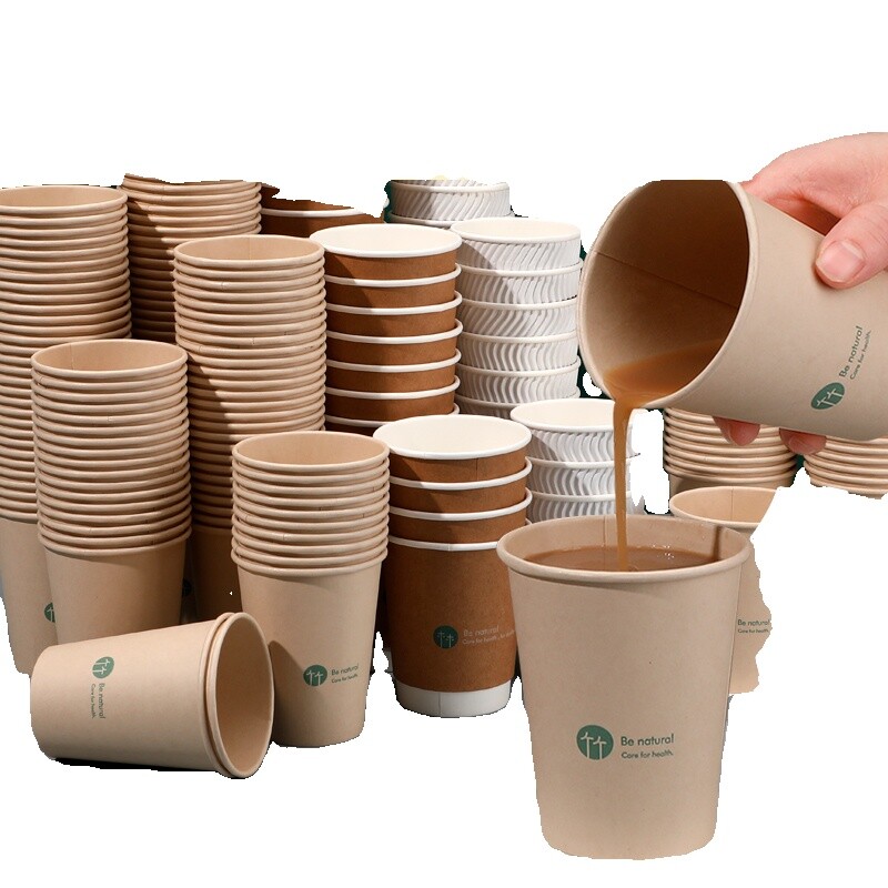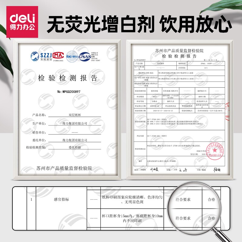 得力一次性杯子纸杯家用水杯加厚茶杯商用大号防烫竹纤维办公室杯