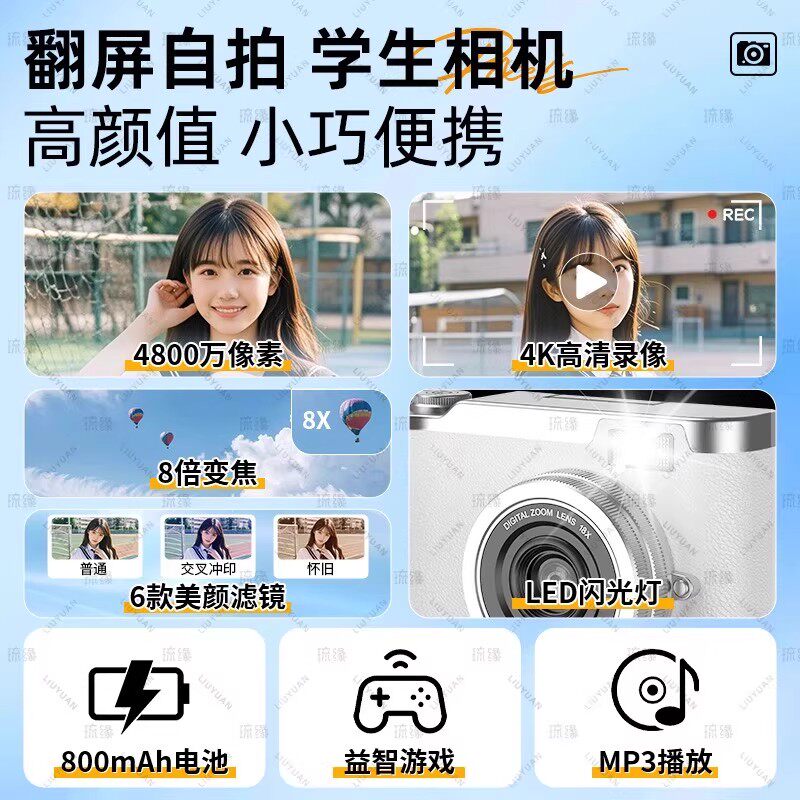 翻转屏自拍相机入门女生数码相机学生高清旅游校园微单ccd照相机