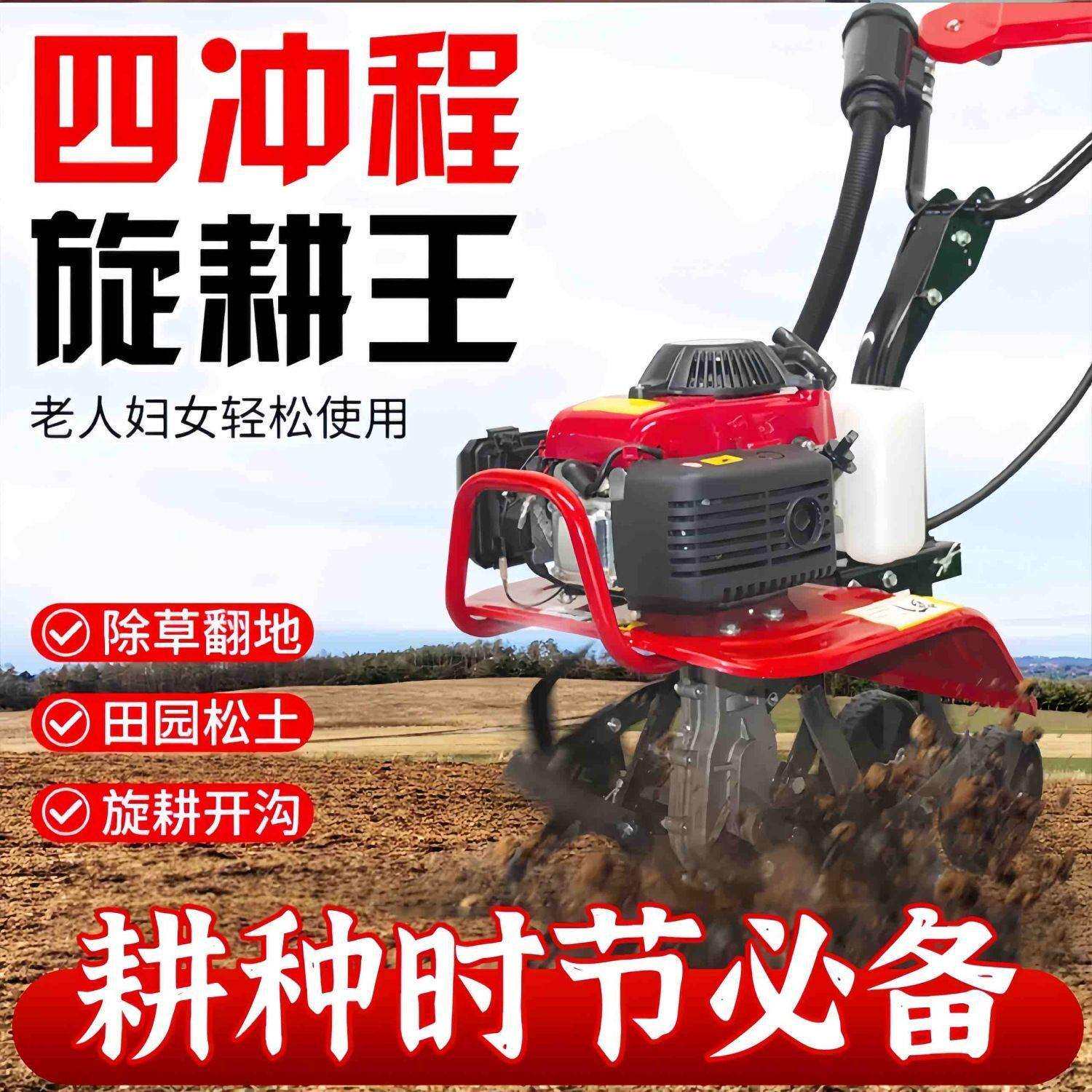 农用微耕机小型汽油四冲程多功能旋耕机除草松土开沟水田开荒神器