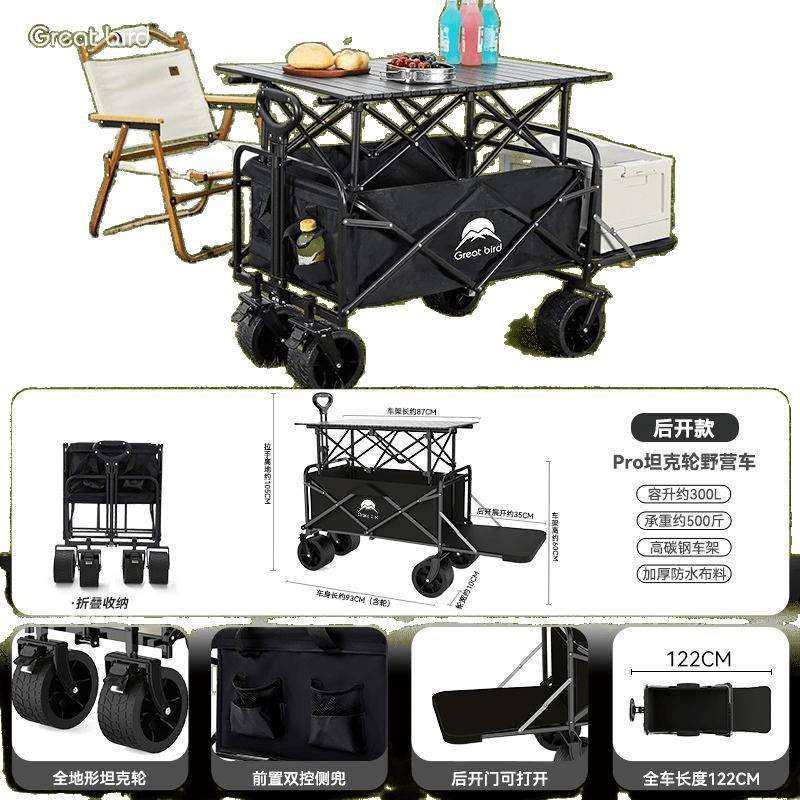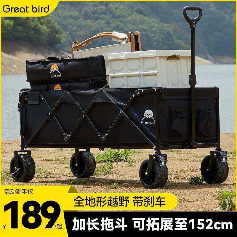出色鸟超大露营车大号后开门户外营地车多功能折叠小推车儿童可躺