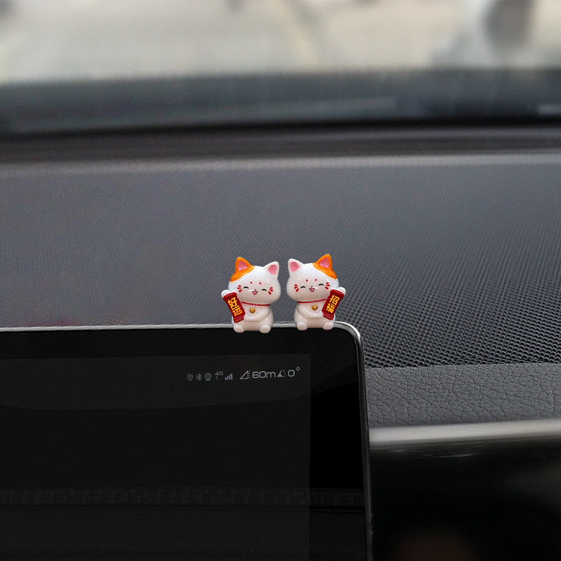 新款网红可爱招财猫汽车摆件车内中控台迷你公仔摆件装饰用品