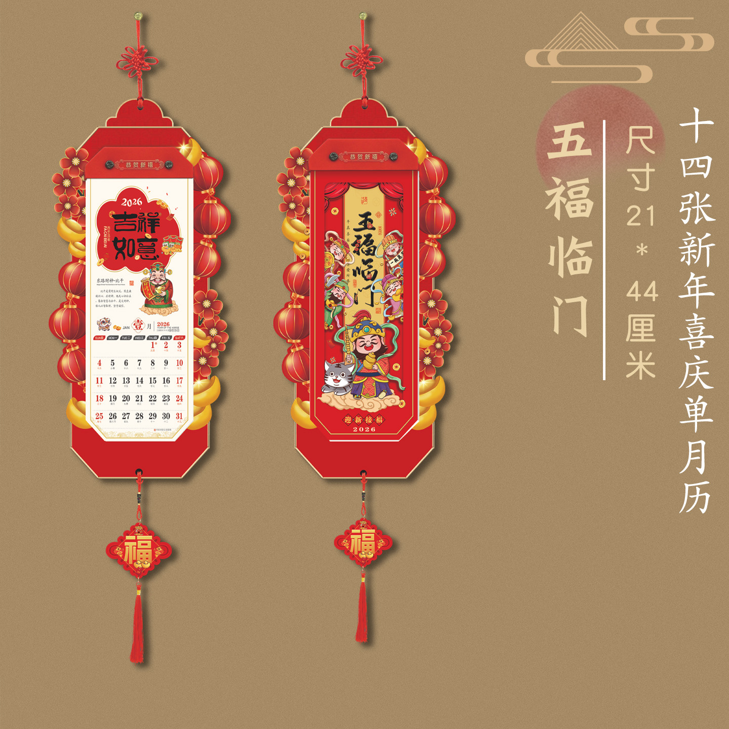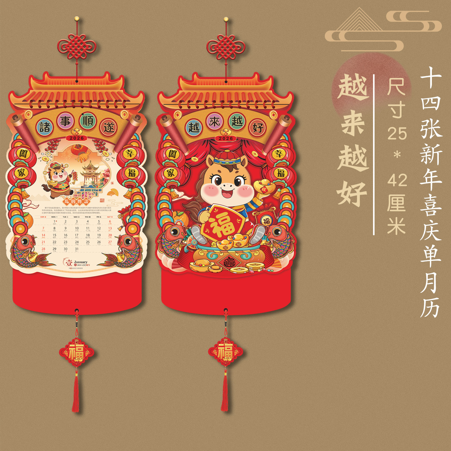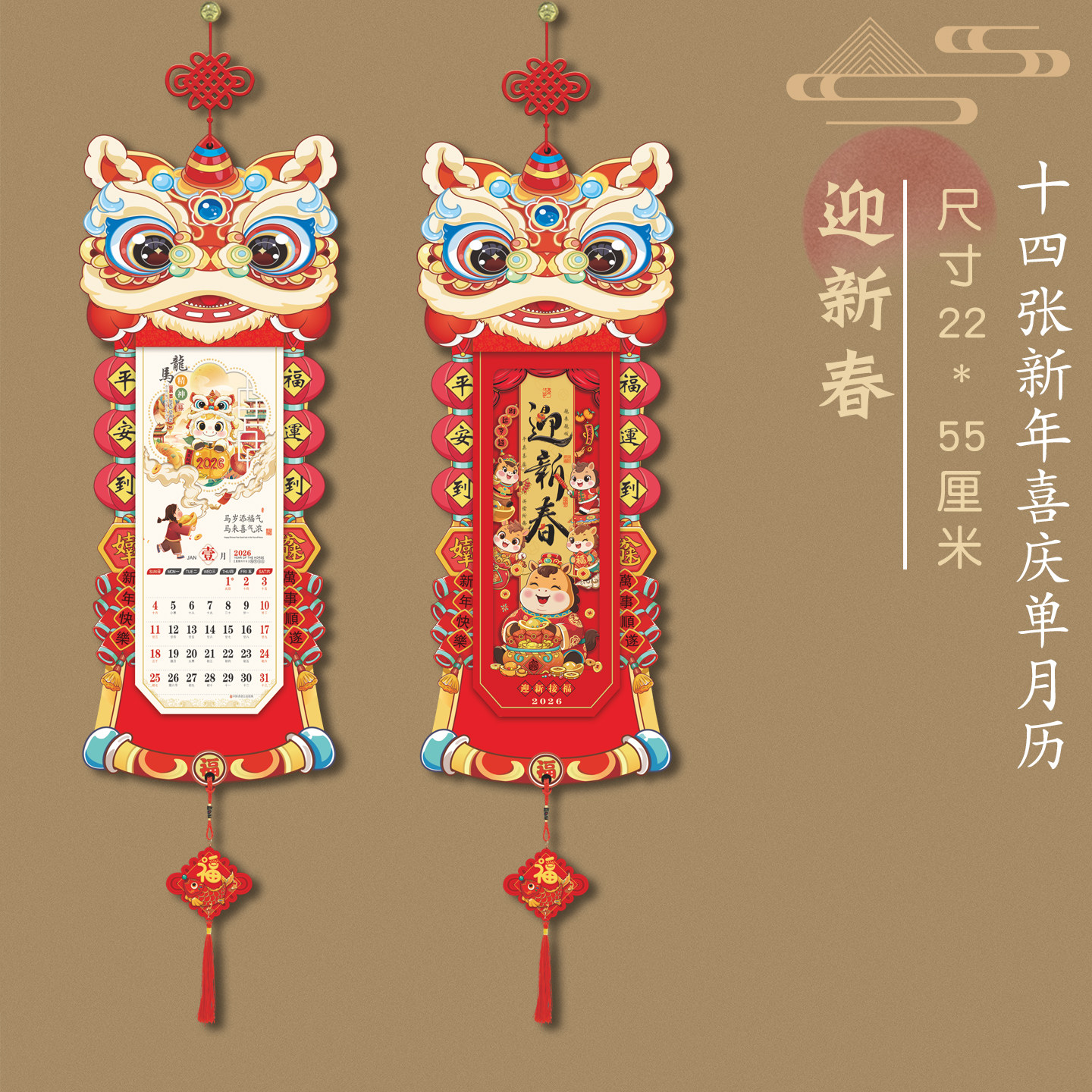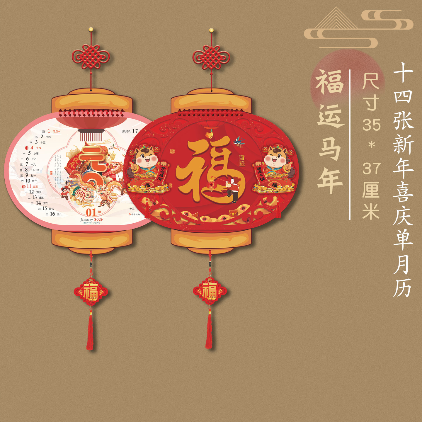 2026年日历创意新款灯笼挂历中国风马年加厚十三张月历家用挂墙装饰福字年历吊牌老黄历客户礼品广告定制订做