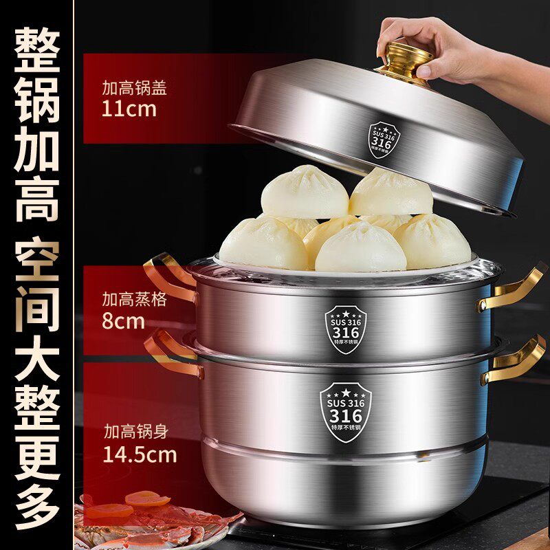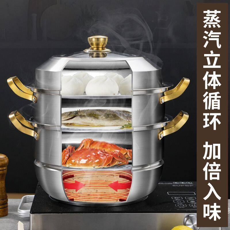 特厚不锈钢蒸锅四层大容量家用蒸屉双层三层蒸馒头蒸鱼加厚蒸笼