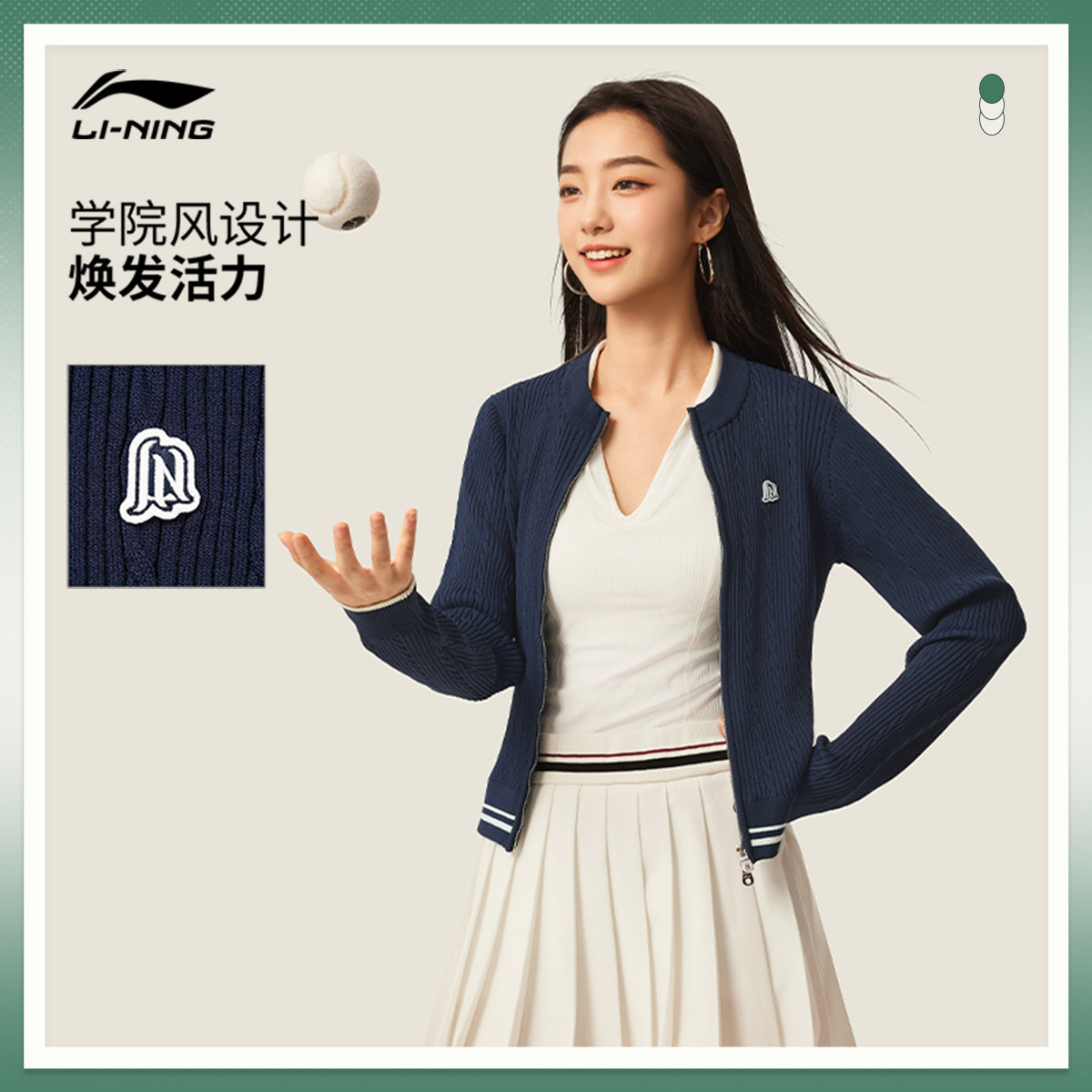 李宁编织衫女士官方新款运动时尚系列圆领上衣春季休闲毛衣运动服