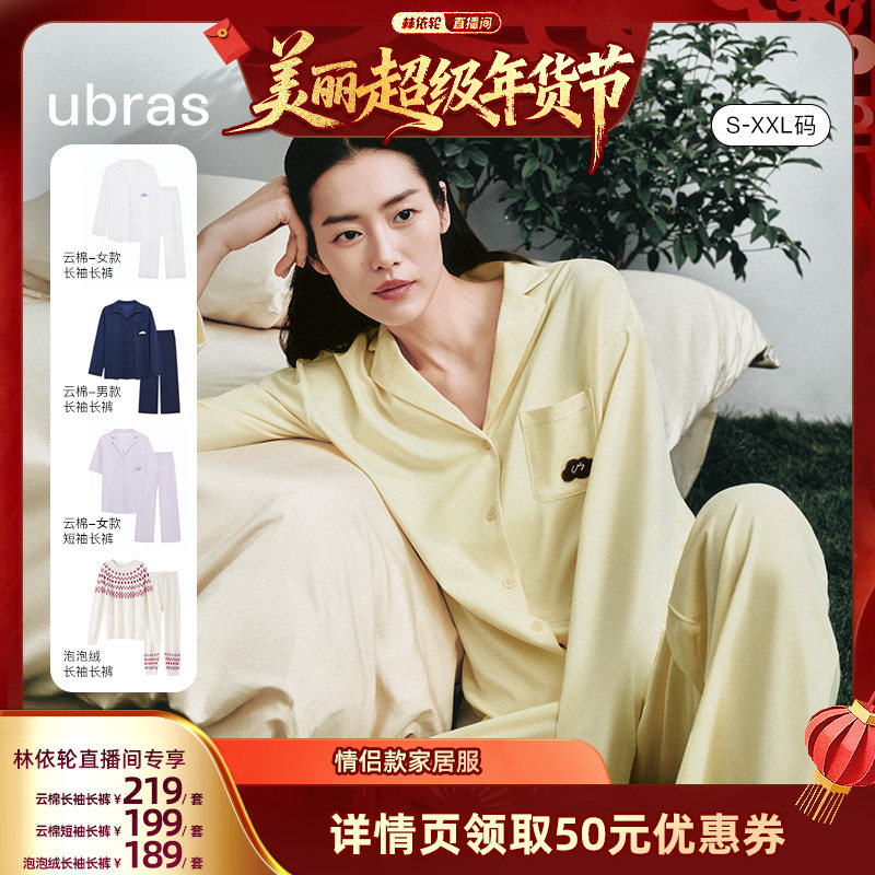 【林依轮直播间】ubras云棉印花/开襟翻领/泡泡绒情侣家居服ii