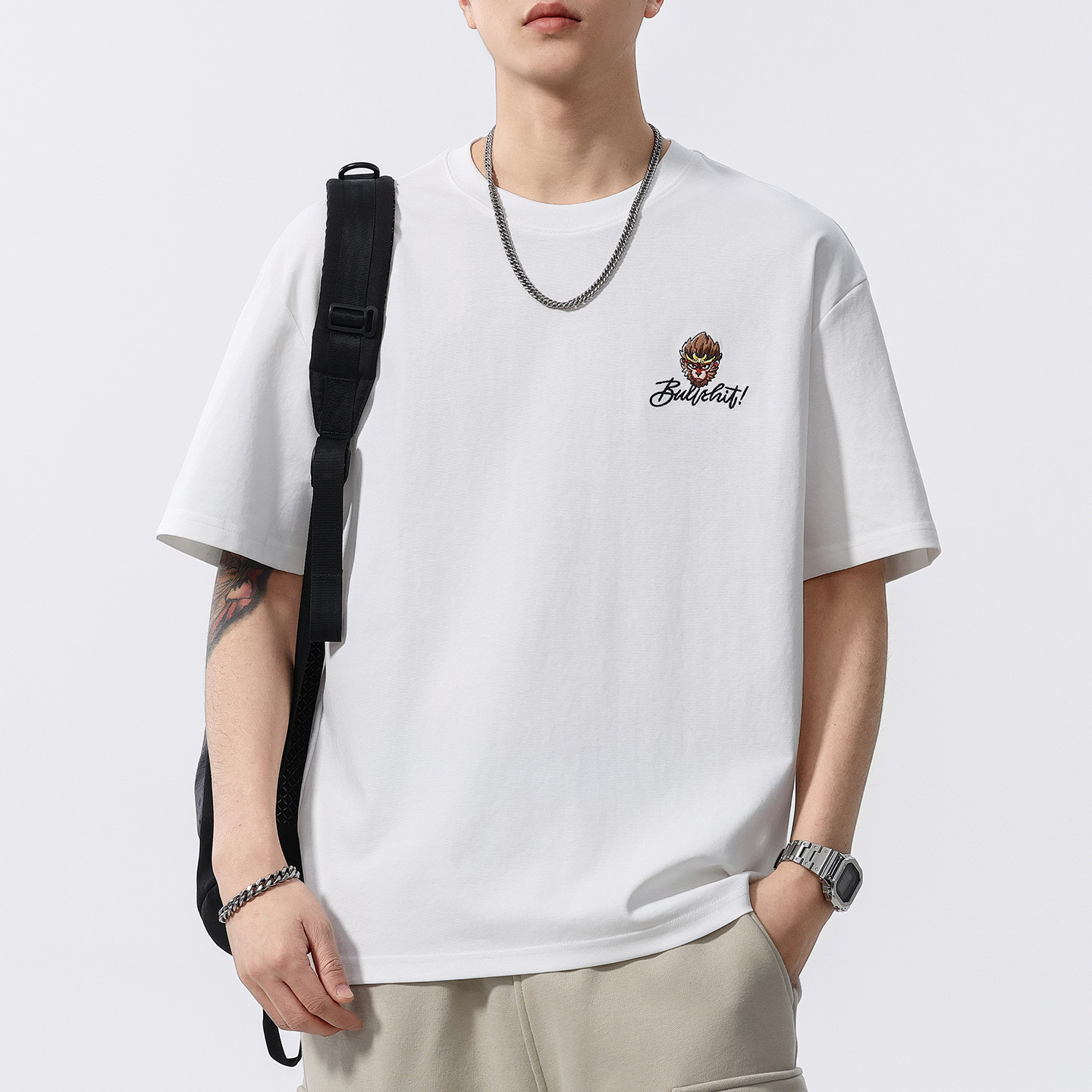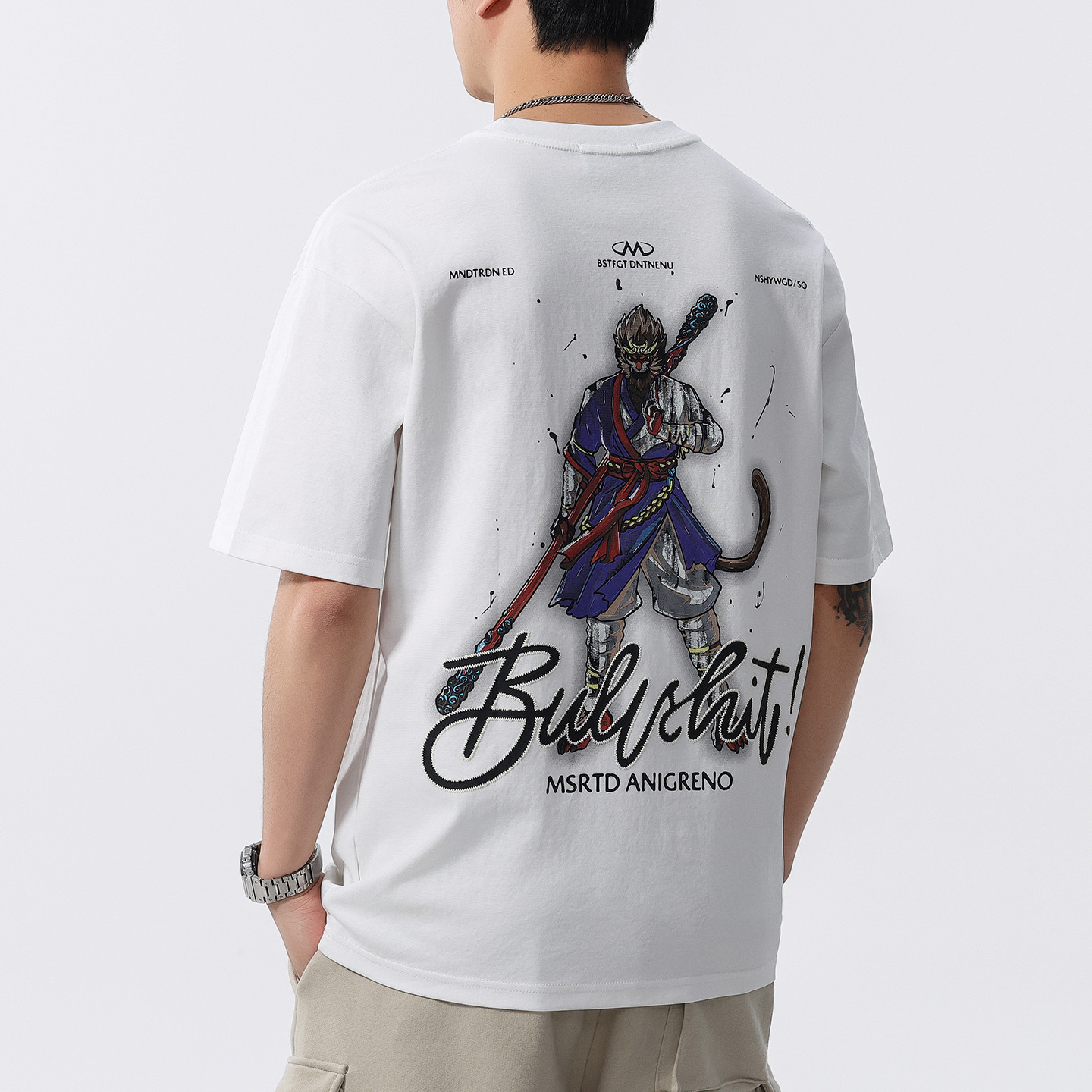 男士重工刺绣t恤男国潮动漫短袖夏季宽松2025新款半袖上衣体恤衫