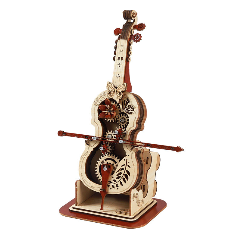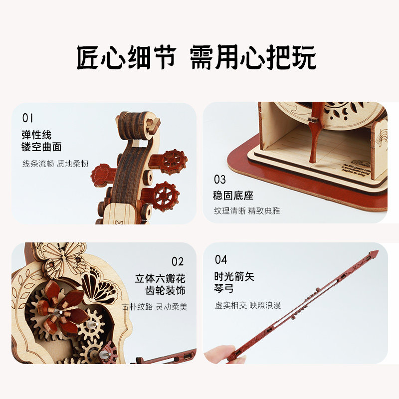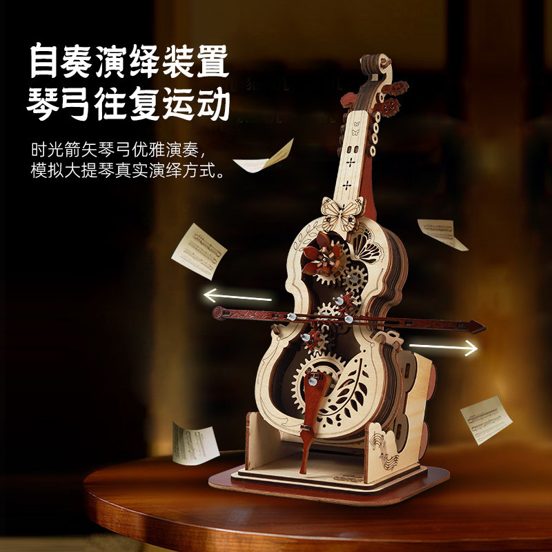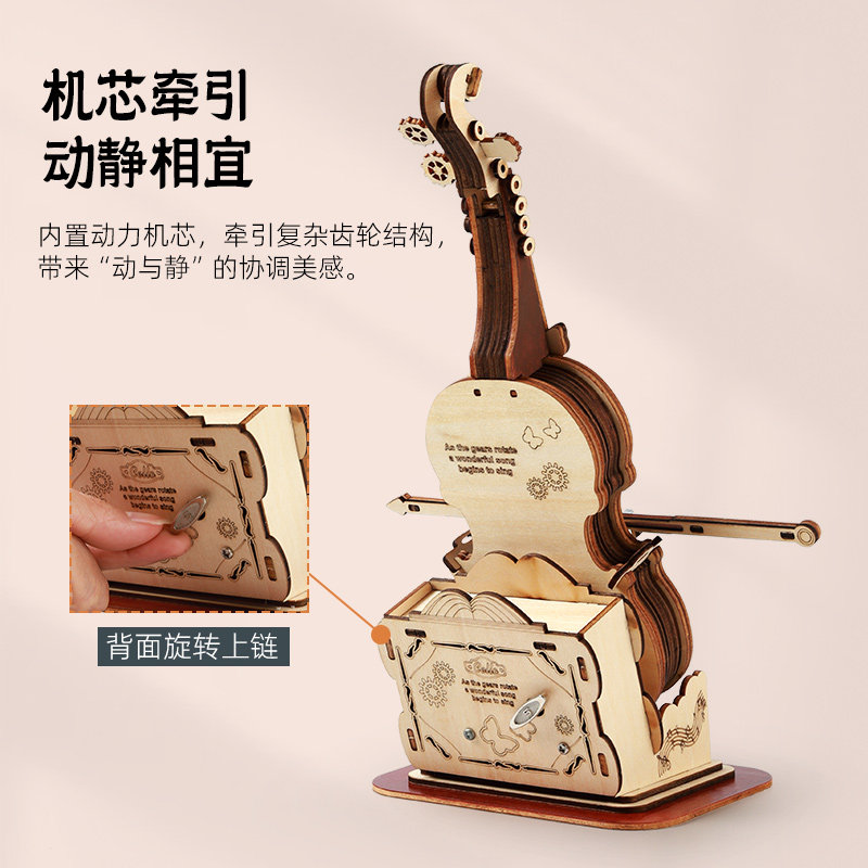 秘境大提琴音乐盒八音盒diy手工生日礼物积木质拼装拼图摆件立体