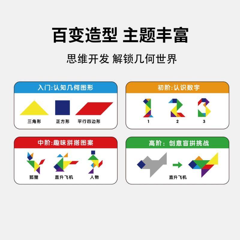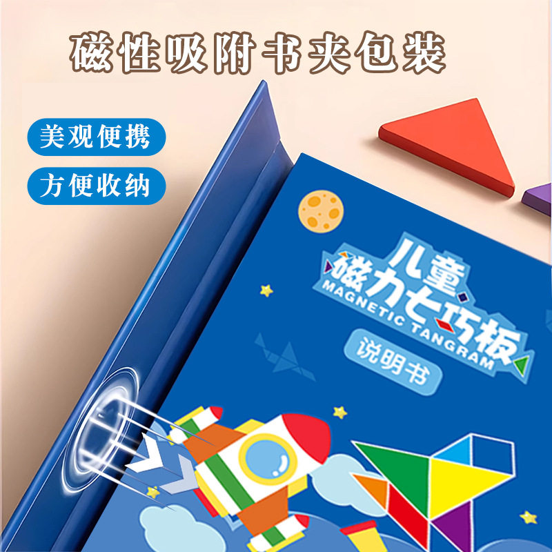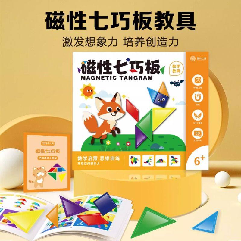 磁性七巧板拼图3-12岁益智早教训练拼板教具幼儿园小学生磁性玩具