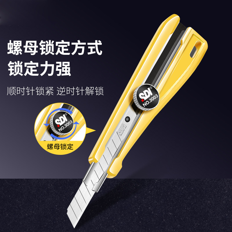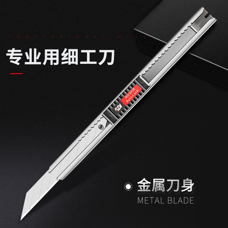 SDI手牌美工刀小型9mm批发贴壁纸墙布专用刀30度尖角汽车贴膜刀不锈钢工具刀架裁纸拆快递办公用品锋利耐用刀