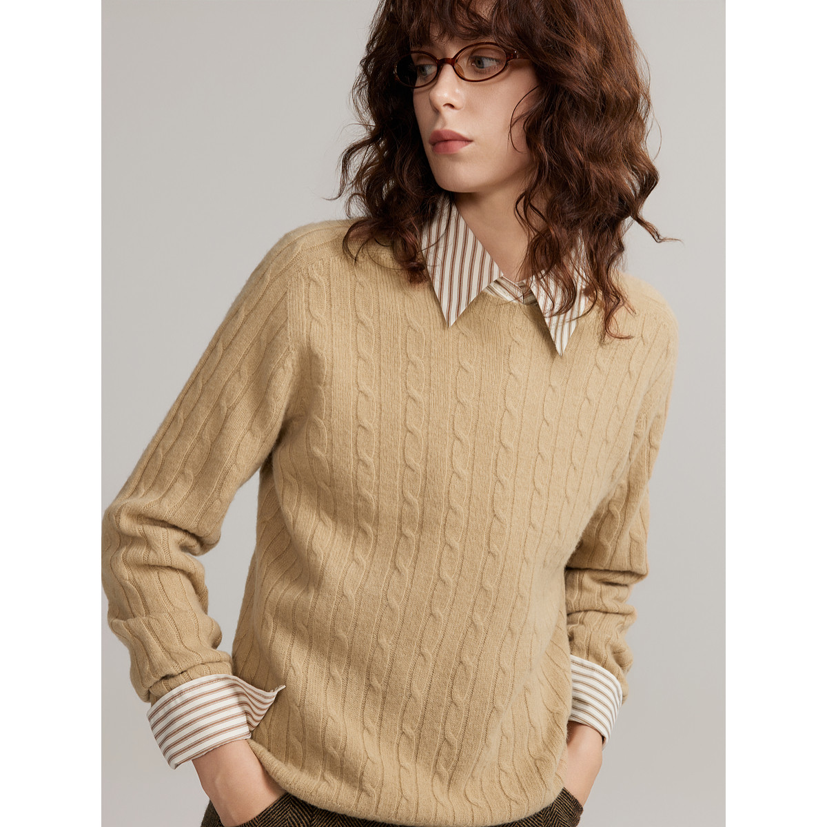 NVPVVA 秋冬新款学院风慵懒翻领绞花毛衣麻花宽松套头LOGO针织衫