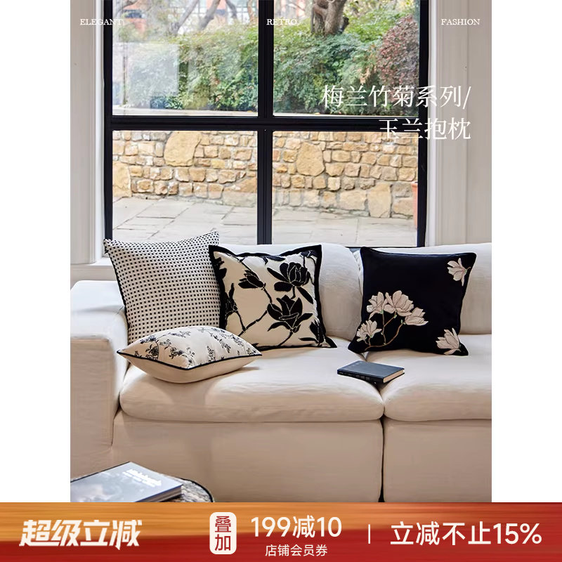 蜡笔派玉兰知春刺绣抱枕法式复古客厅沙发卧室床头靠垫腰靠枕定制