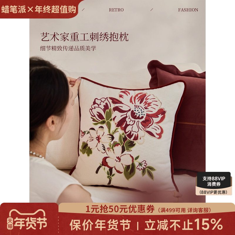 蜡笔派|红果果系列|丹蓉绣影刺绣抱枕轻奢新年客厅沙发睡觉靠垫